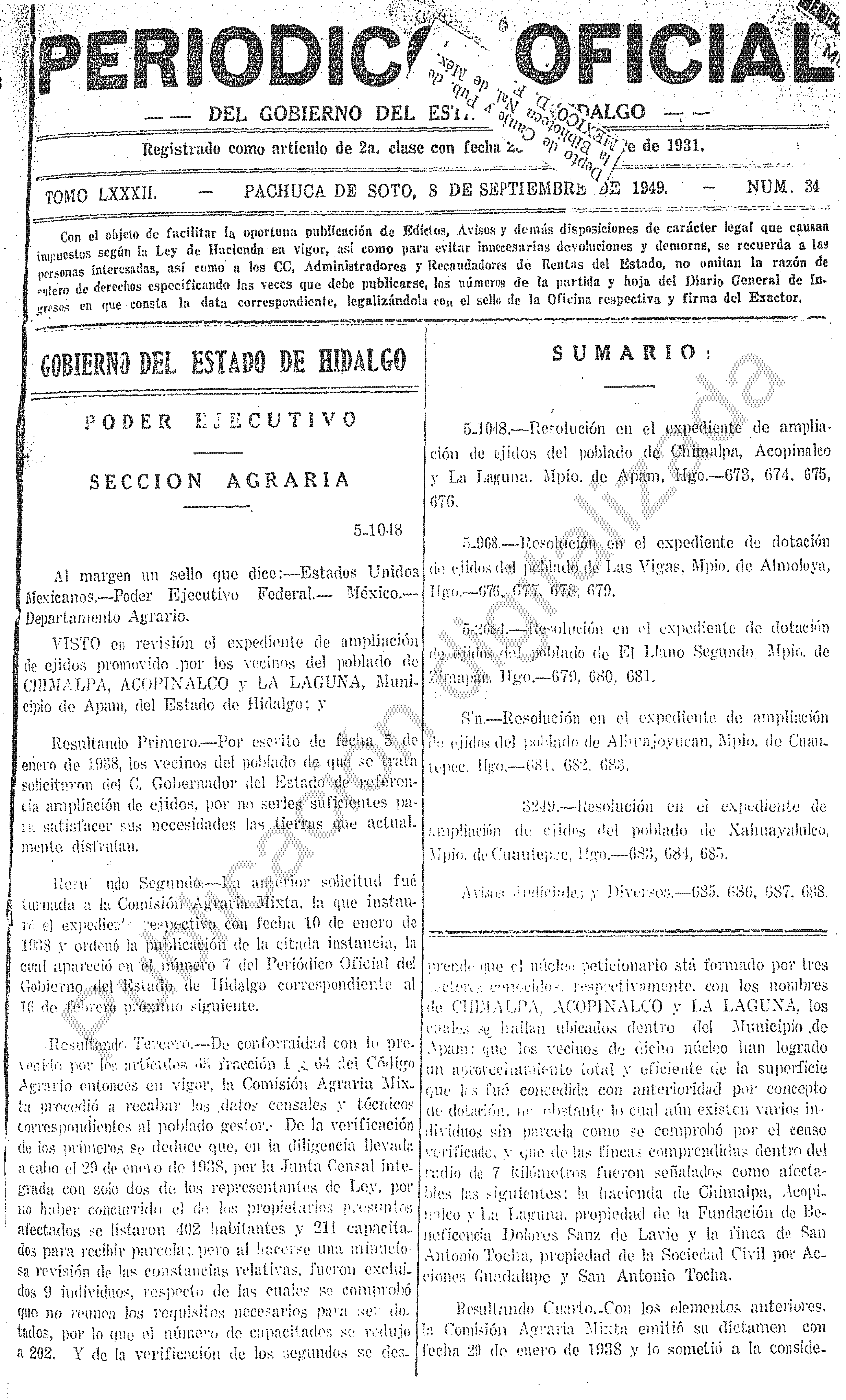 Descargar Periódico Oficial Ordinario 0 del 08 de septiembre de 1949