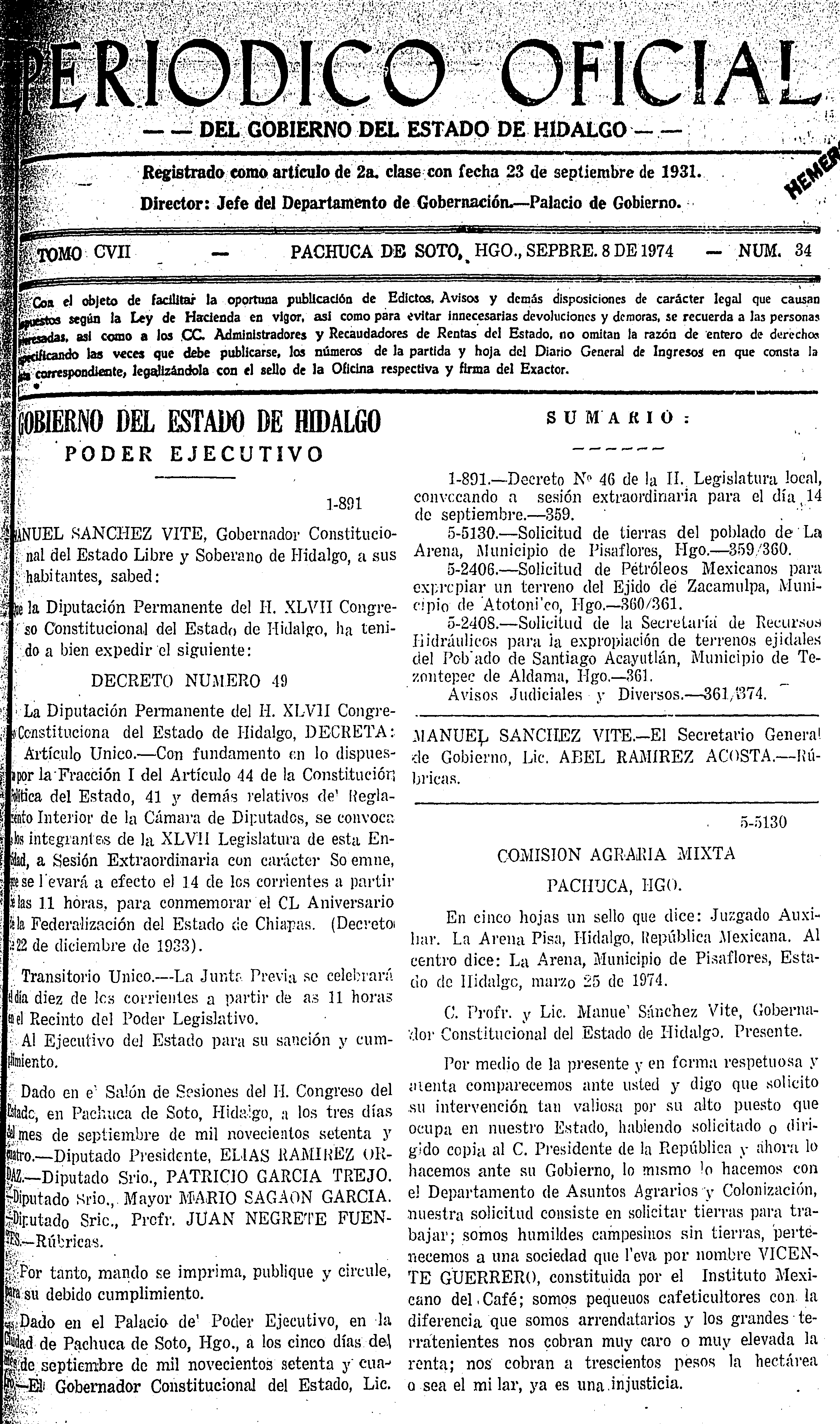 Descargar Periódico Oficial Ordinario 0 del 08 de septiembre de 1974
