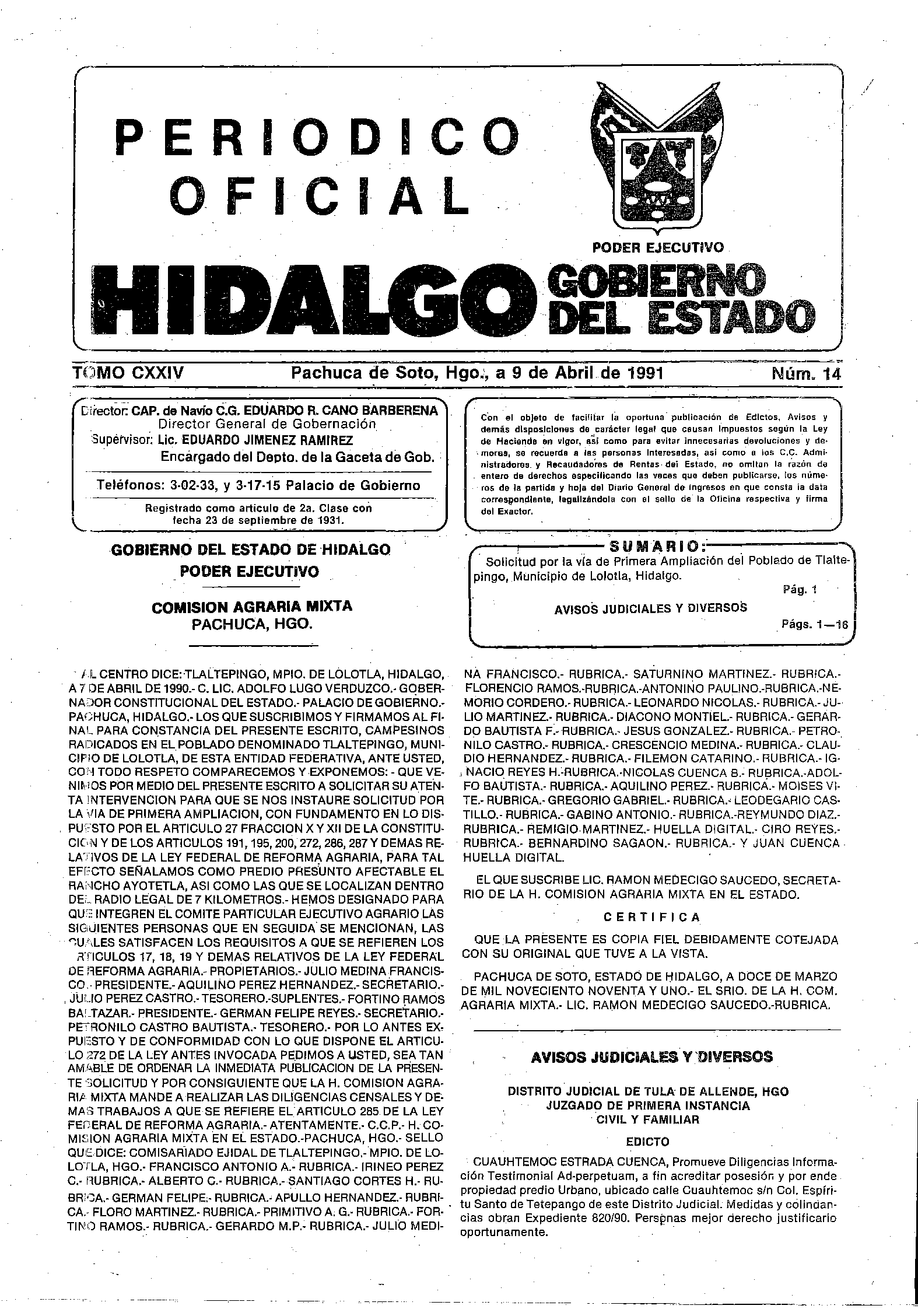 Descargar Periódico Oficial Ordinario 0 del 09 de abril de 1991