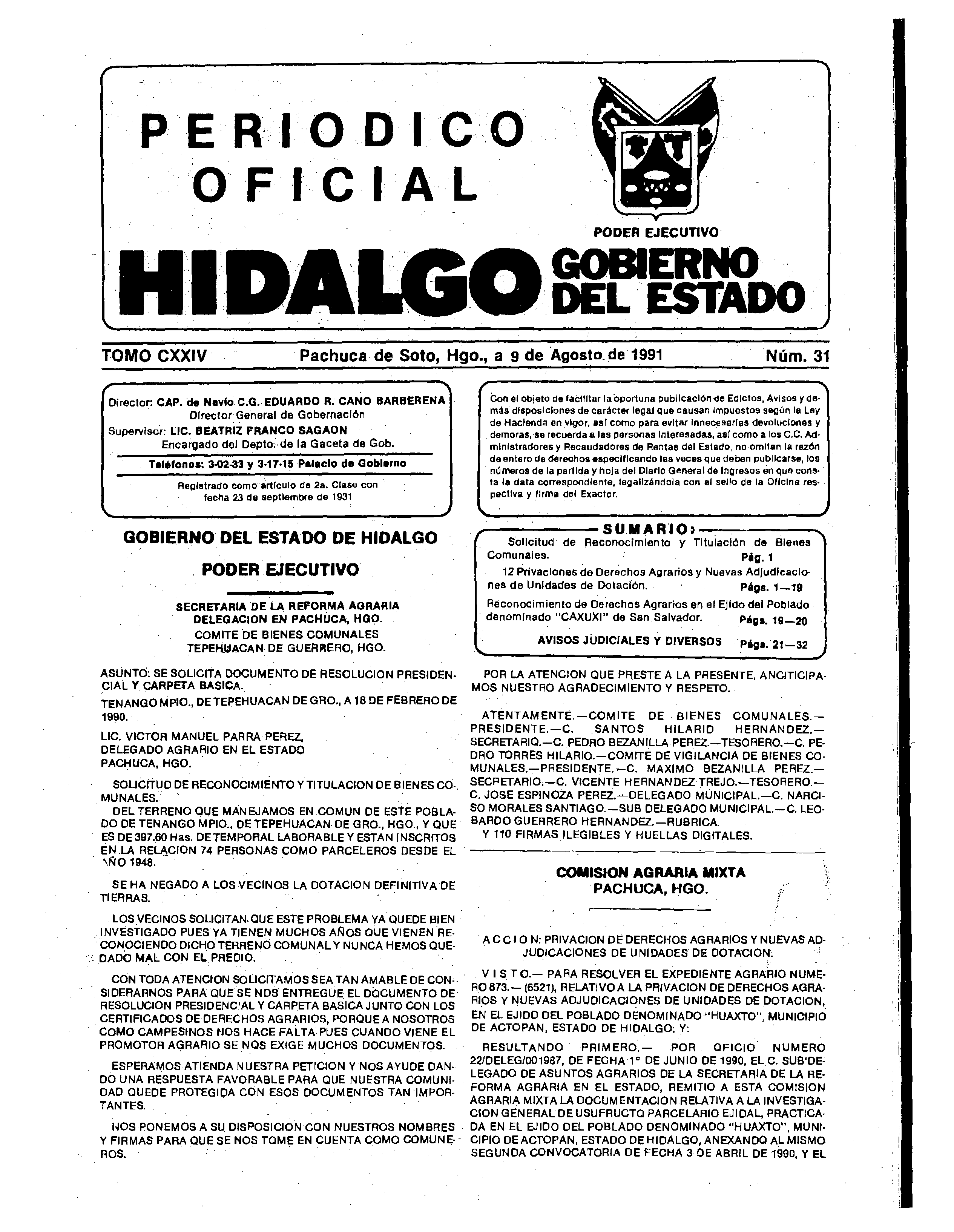 Descargar Periódico Oficial Ordinario 0 del 09 de agosto de 1991