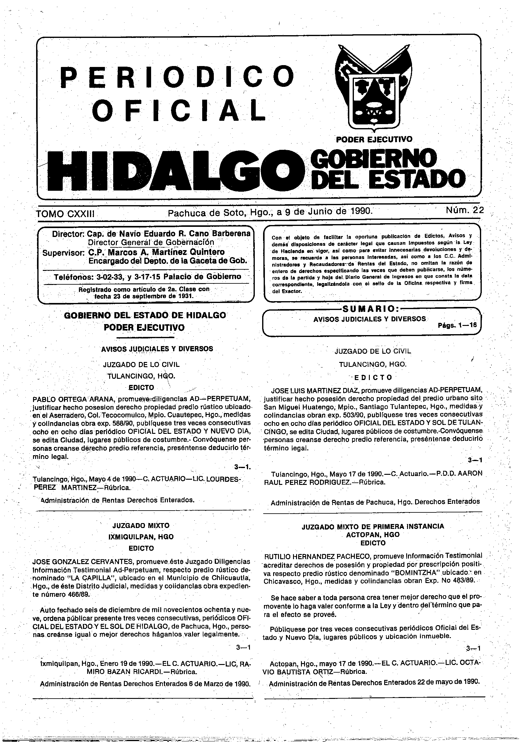 Periódico Oficial Ordinario 0 del 09 de junio de 1990