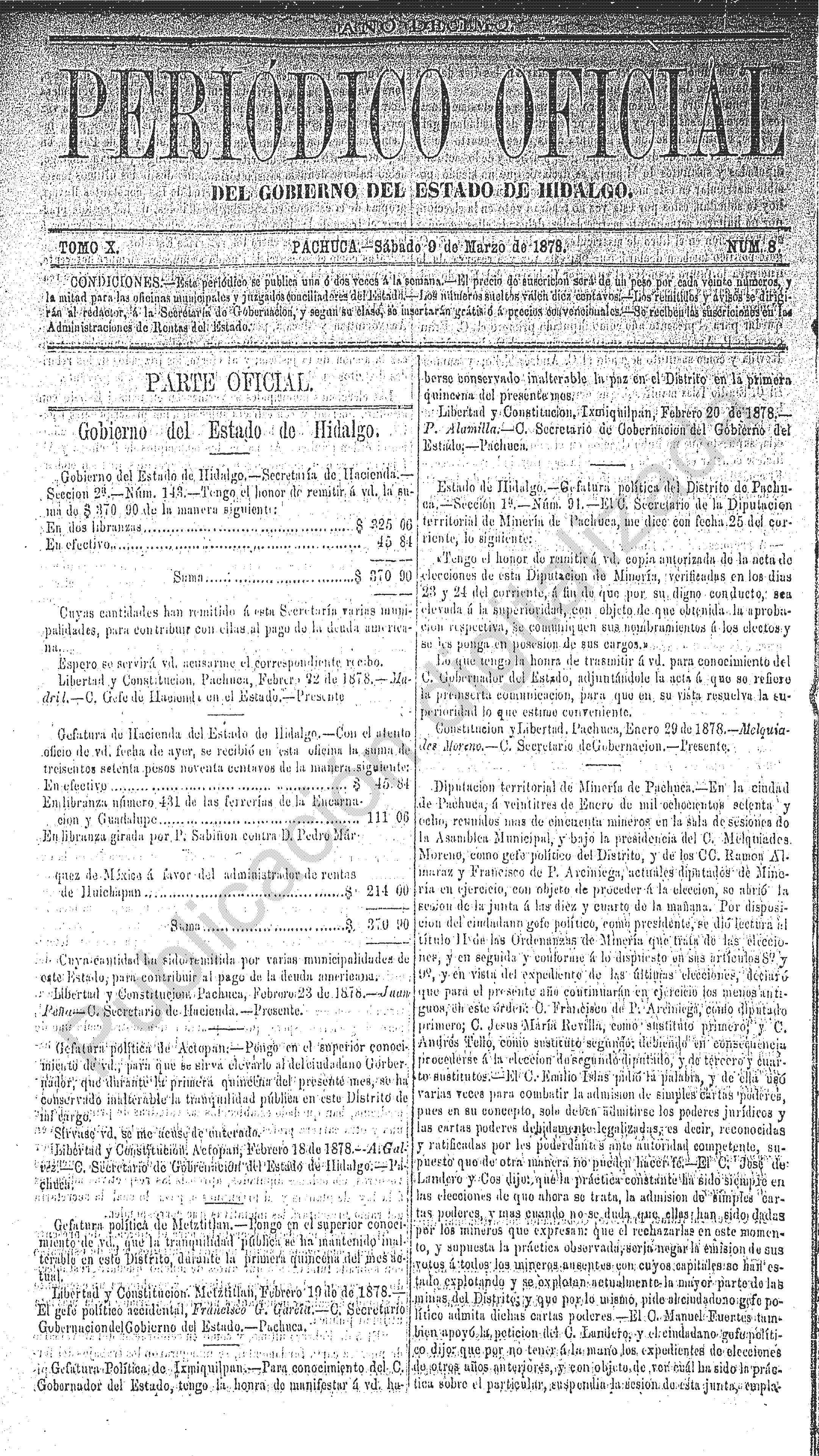 Descargar Periódico Oficial Ordinario 0 del 09 de marzo de 1878Tamaño 917.04 KB