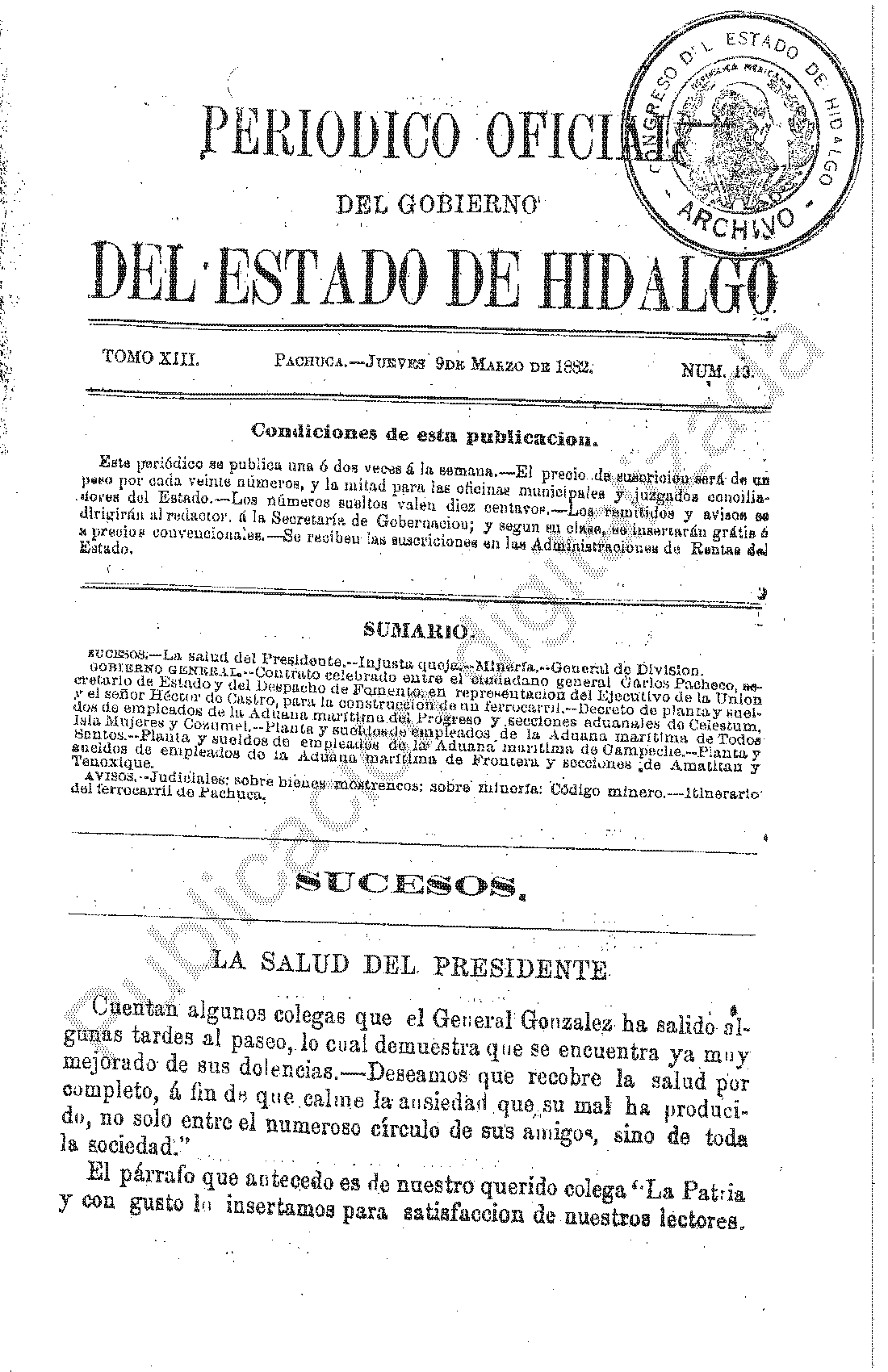 Periódico Oficial Ordinario 0 del 09 de marzo de 1882