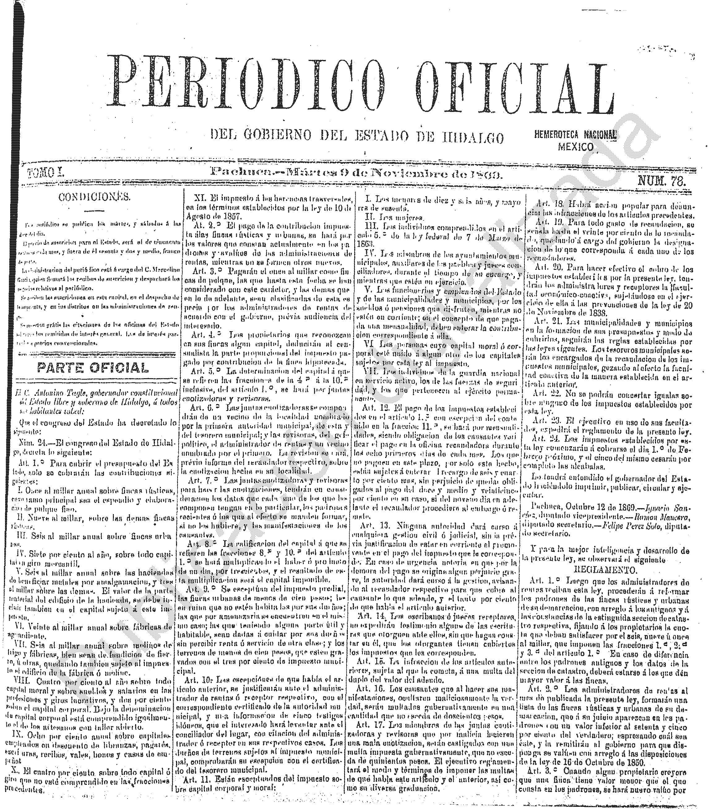 Descargar Periódico Oficial Ordinario 0 del 09 de noviembre de 1869El portal web del Periódico Oficial del Estado de hidalgo es el único medio de difusión oficial del Gobierno del Estado de Hidalgo