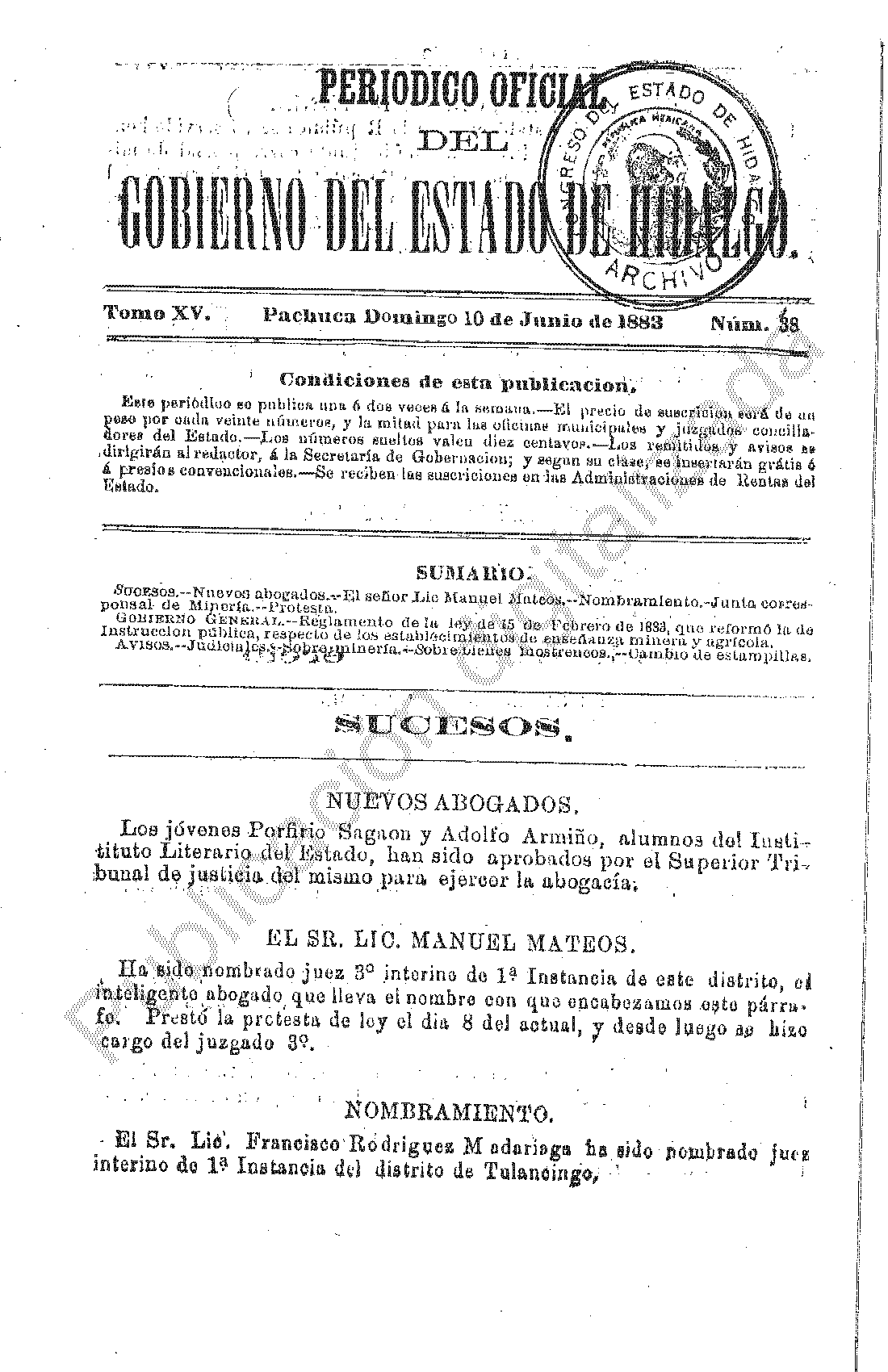 Periódico Oficial Ordinario 0 del 10 de junio de 1883