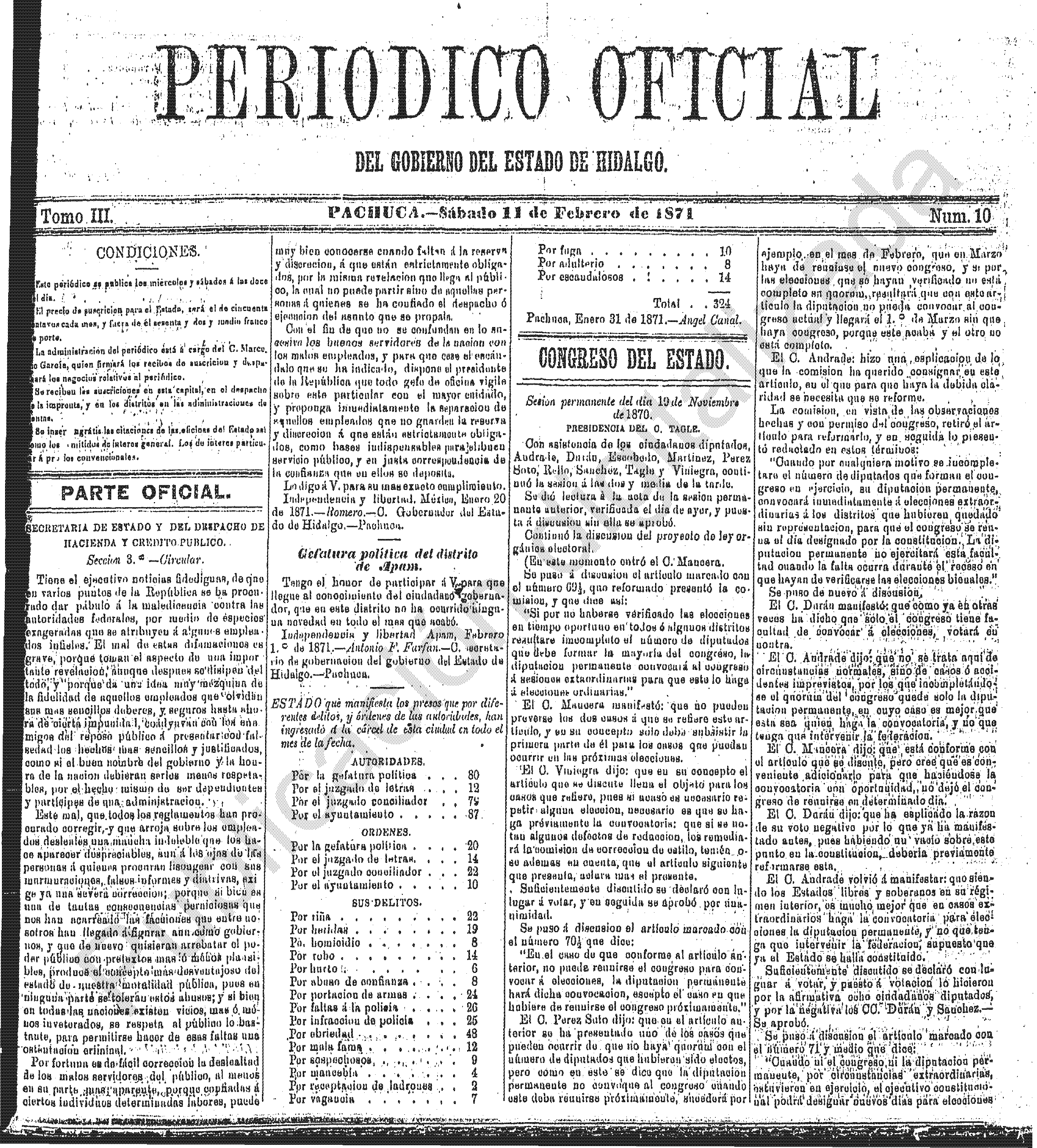 Descargar Periódico Oficial Ordinario 0 del 11 de febrero de 1871El portal web del Periódico Oficial del Estado de hidalgo es el único medio de difusión oficial del Gobierno del Estado de Hidalgo