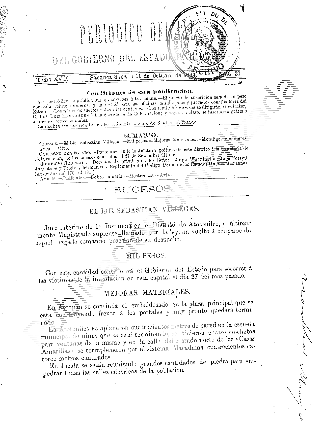 Periódico Oficial Ordinario 0 del 11 de octubre de 1884