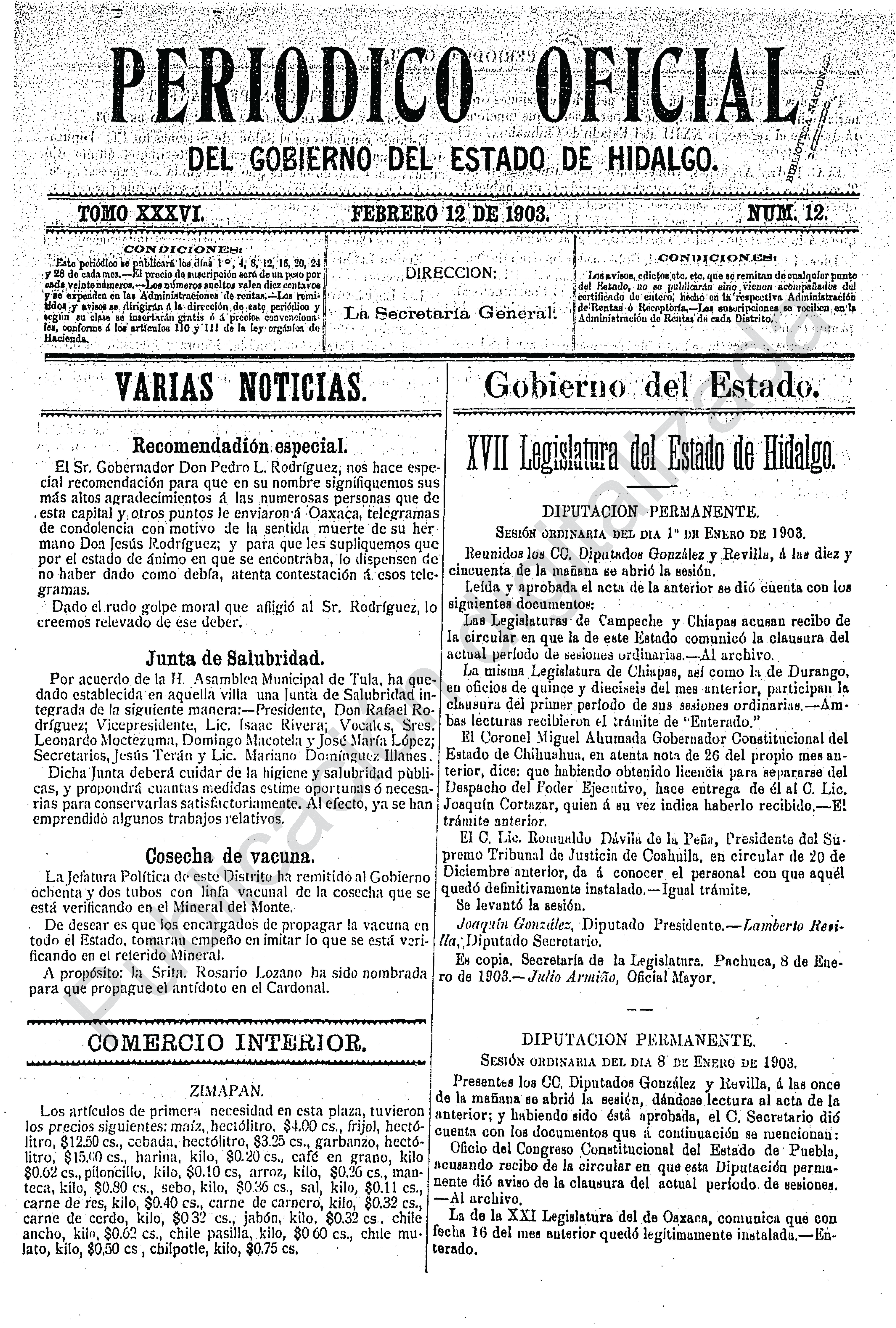 Periódico Oficial Ordinario 0 del 12 de febrero de 1903
