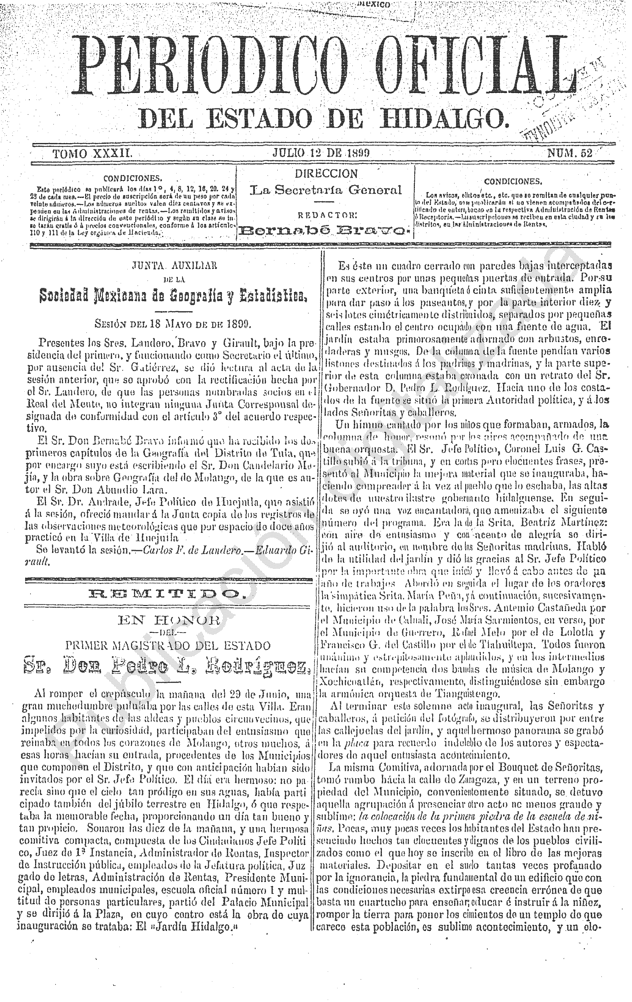 Descargar Periódico Oficial Ordinario 0 del 12 de julio de 1899Tamaño 858.55 KB