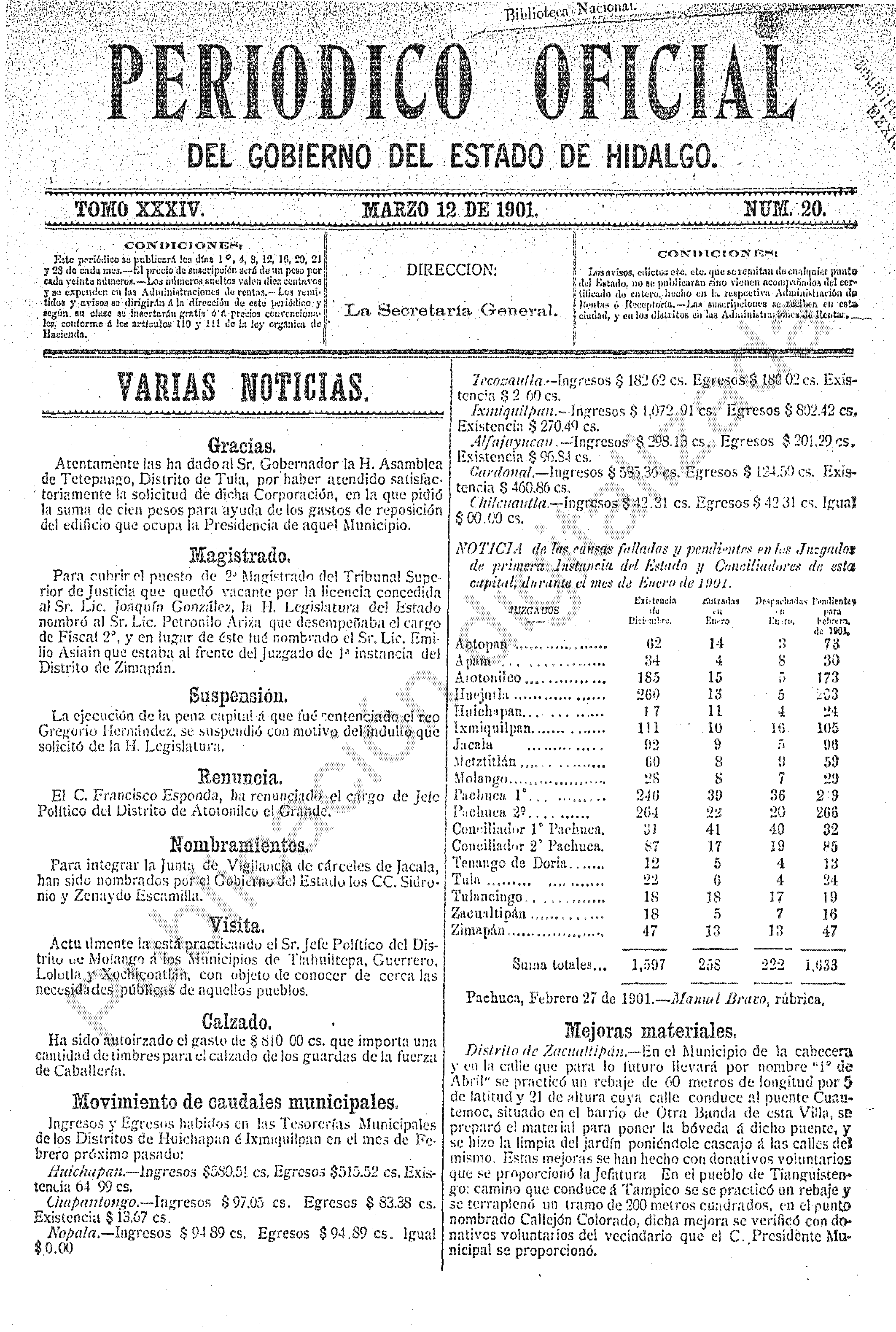Periódico Oficial Ordinario 0 del 12 de marzo de 1901