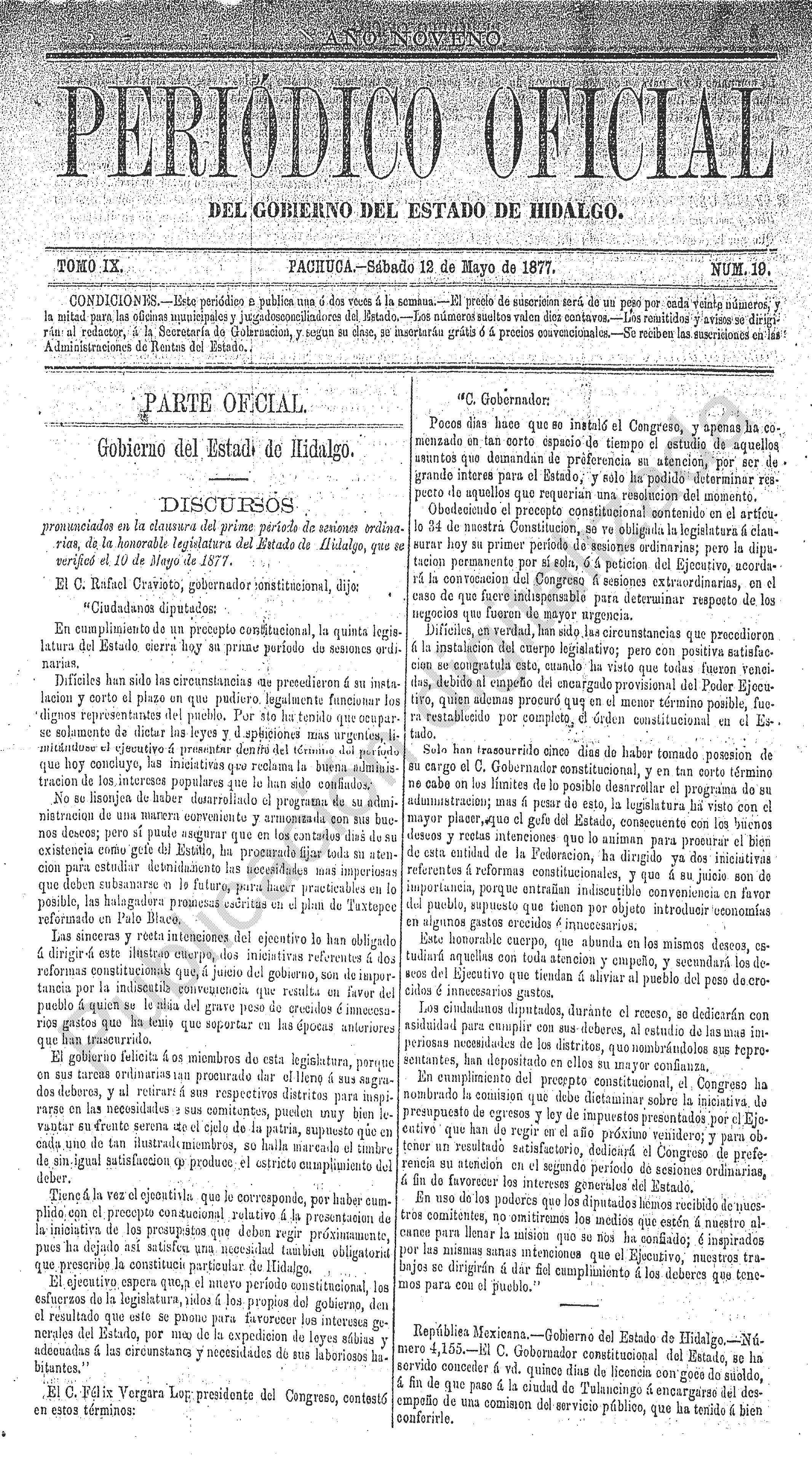 Descargar Periódico Oficial Ordinario 0 del 12 de mayo de 1877Tamaño 1.31 MB