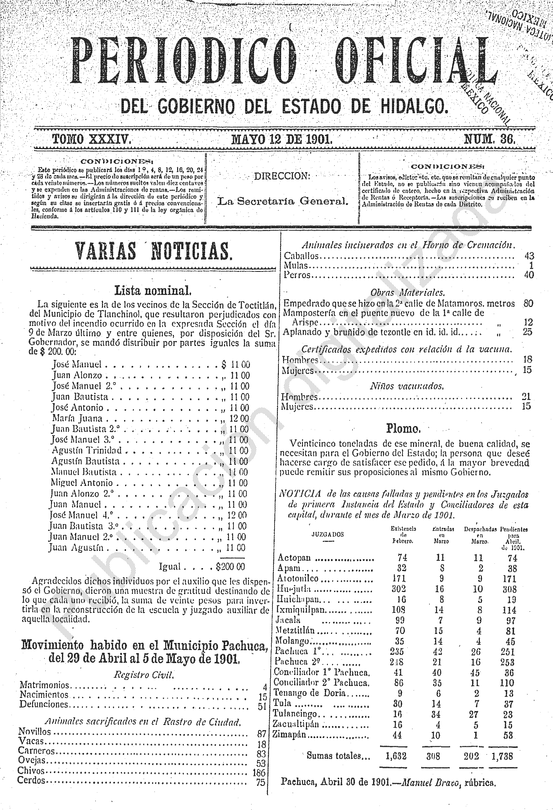 Descargar Periódico Oficial Ordinario 0 del 12 de mayo de 1901Tamaño 1.13 MB