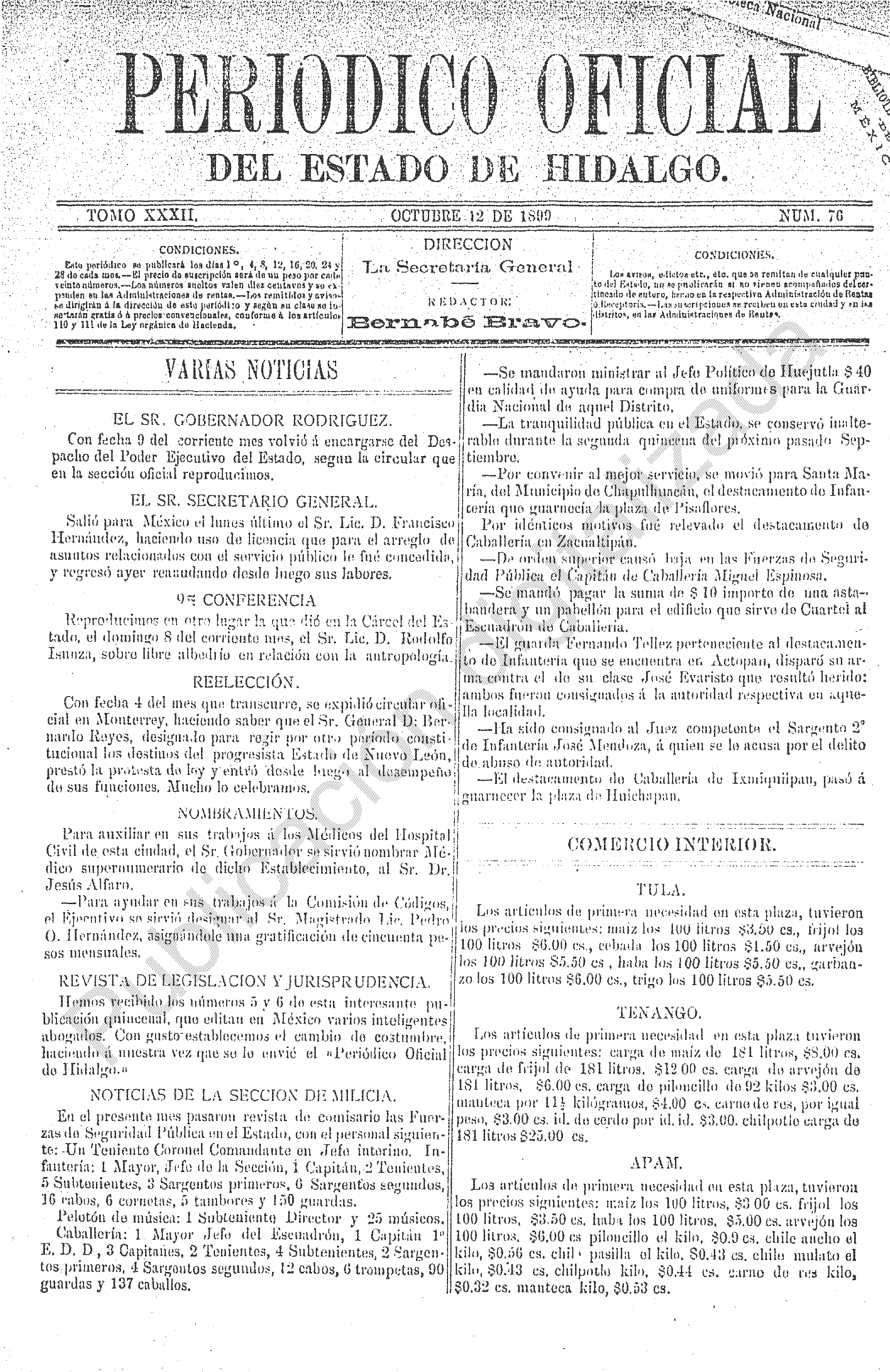 Periódico Oficial Ordinario 0 del 12 de octubre de 1899