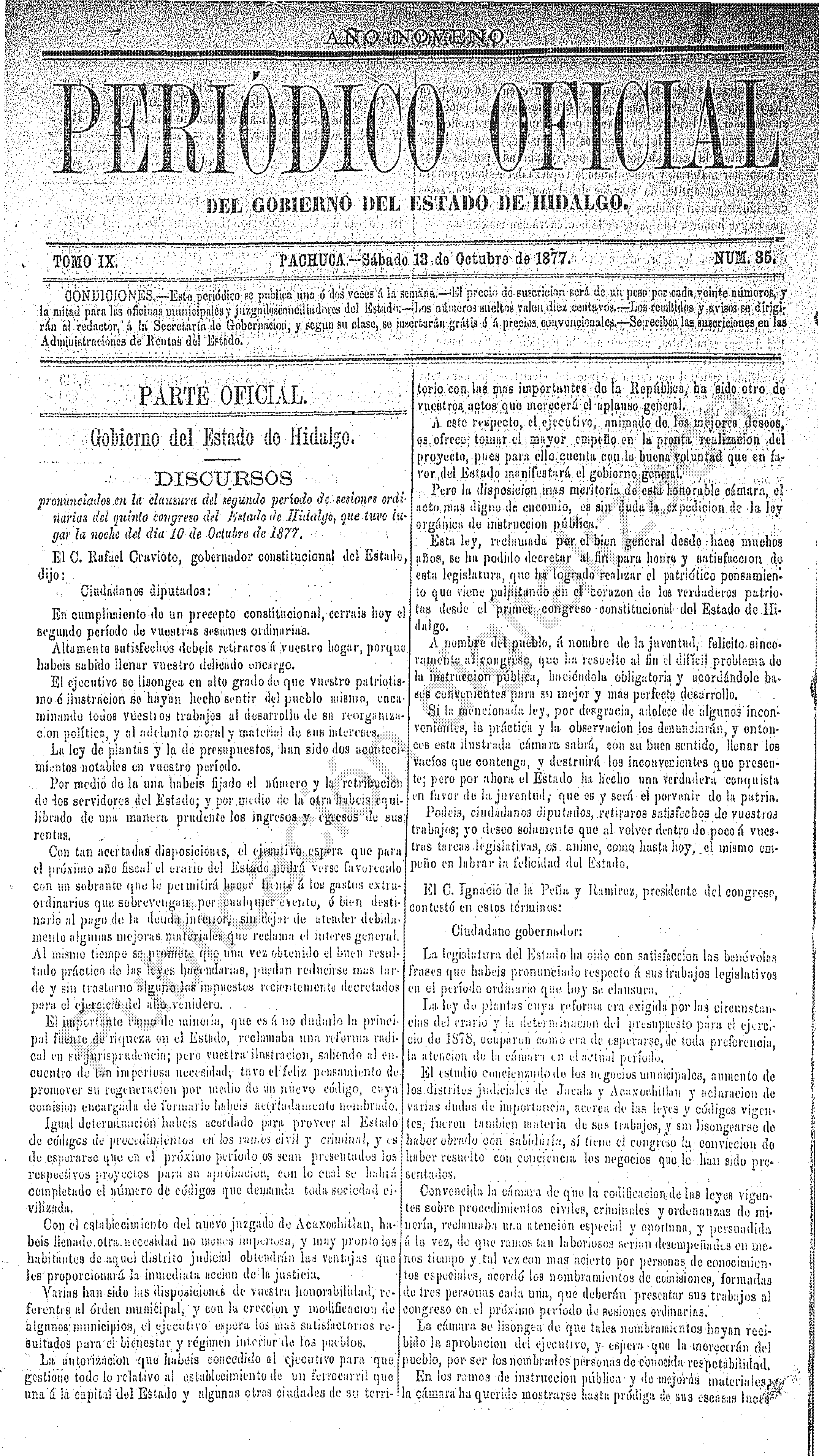 Periódico Oficial Ordinario 0 del 13 de octubre de 1877