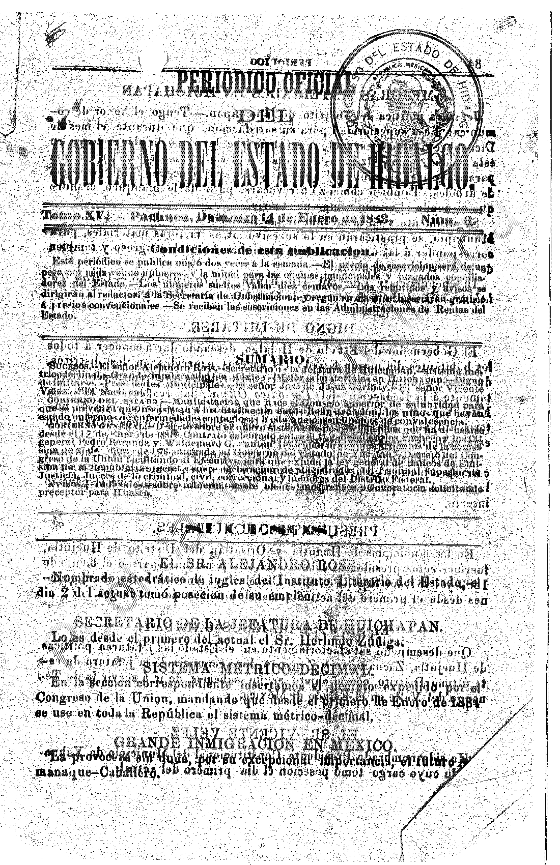 Descargar Periódico Oficial Ordinario 0 del 14 de enero de 1883Tamaño 1.30 MB