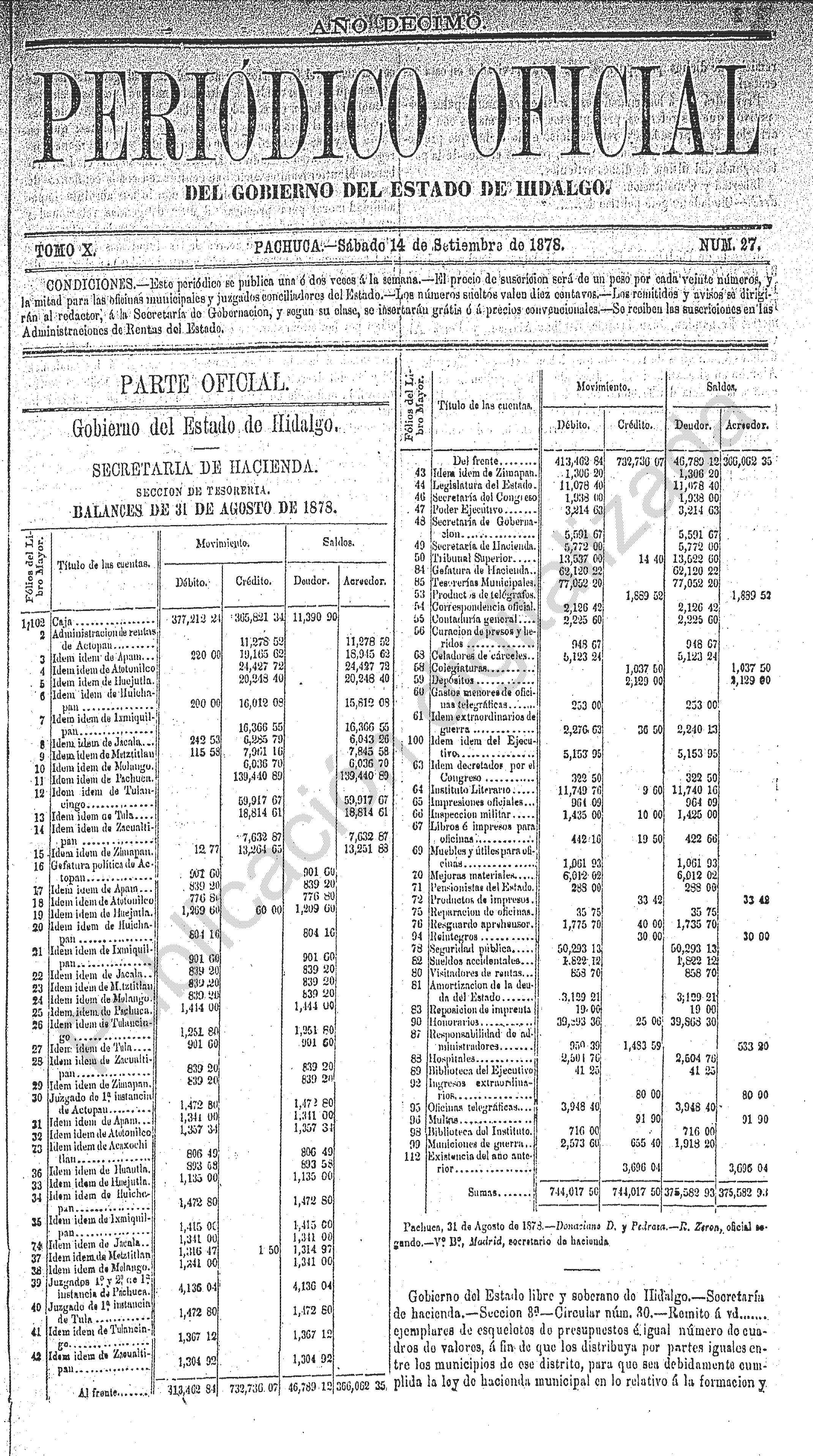 - Gobierno del Estado, Secretaria de Hacienda, Sección de Tesorería, Balances de 31 de Agosto de 1878