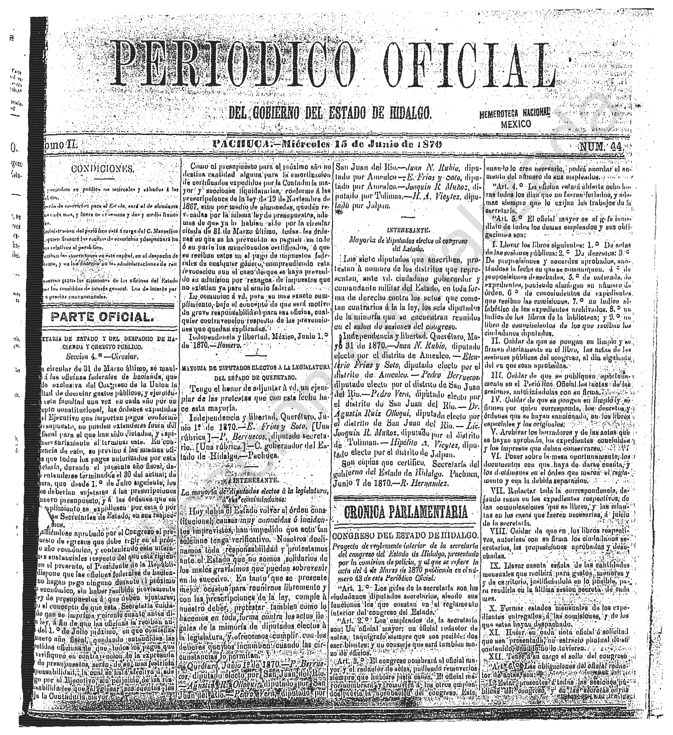 Descargar Periódico Oficial Ordinario 0 del 15 de junio de 1870El portal web del Periódico Oficial del Estado de hidalgo es el único medio de difusión oficial del Gobierno del Estado de Hidalgo