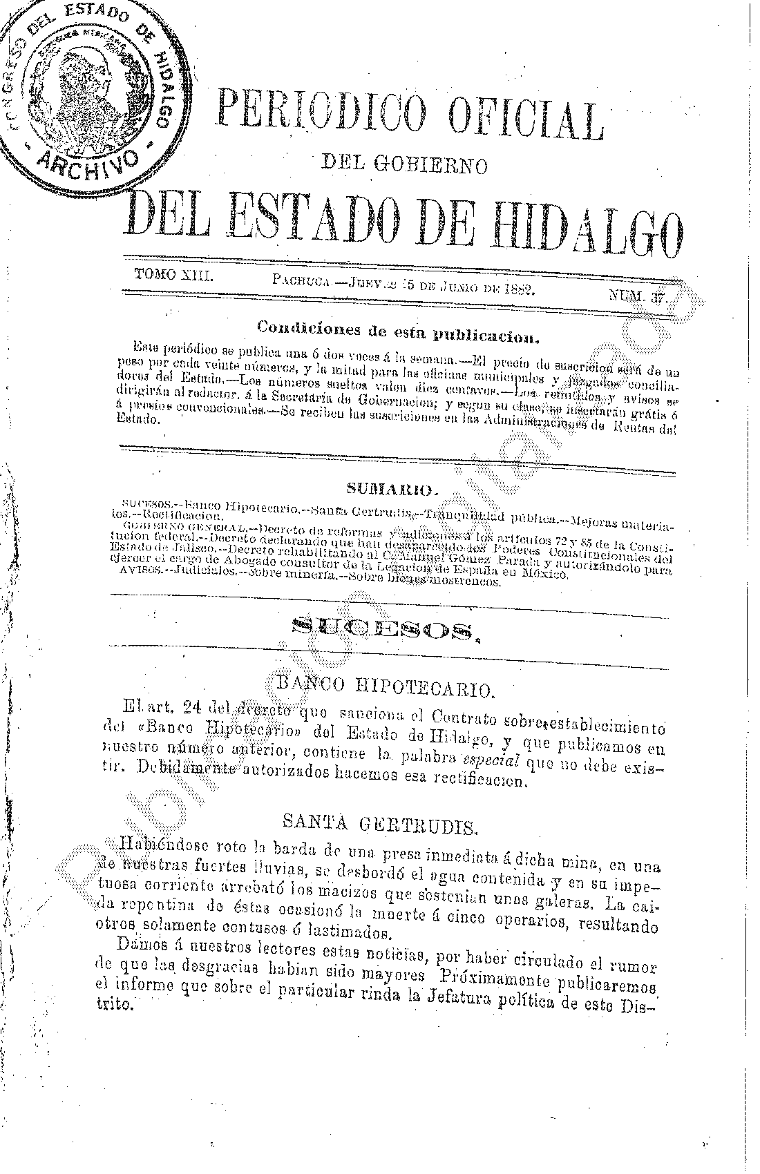 Descargar Periódico Oficial Ordinario 0 del 15 de junio de 1882El portal web del Periódico Oficial del Estado de hidalgo es el único medio de difusión oficial del Gobierno del Estado de Hidalgo