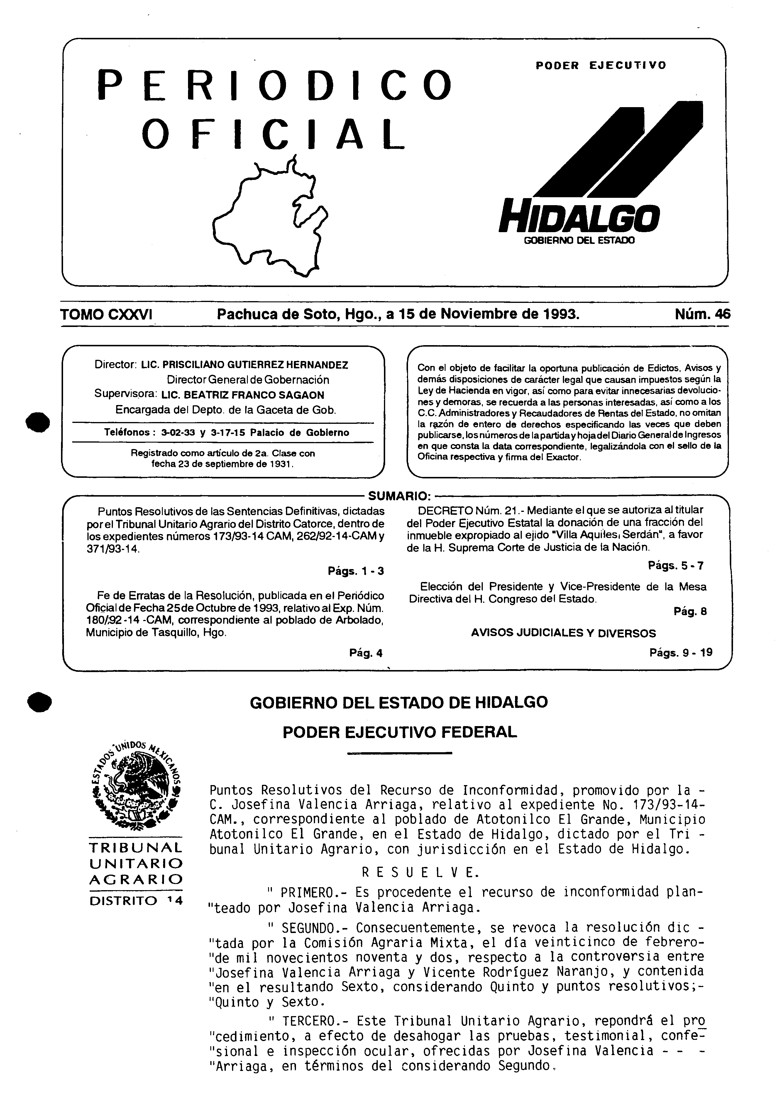 Edición: Ordinario 0 Número: 46 Páginas: 19 |