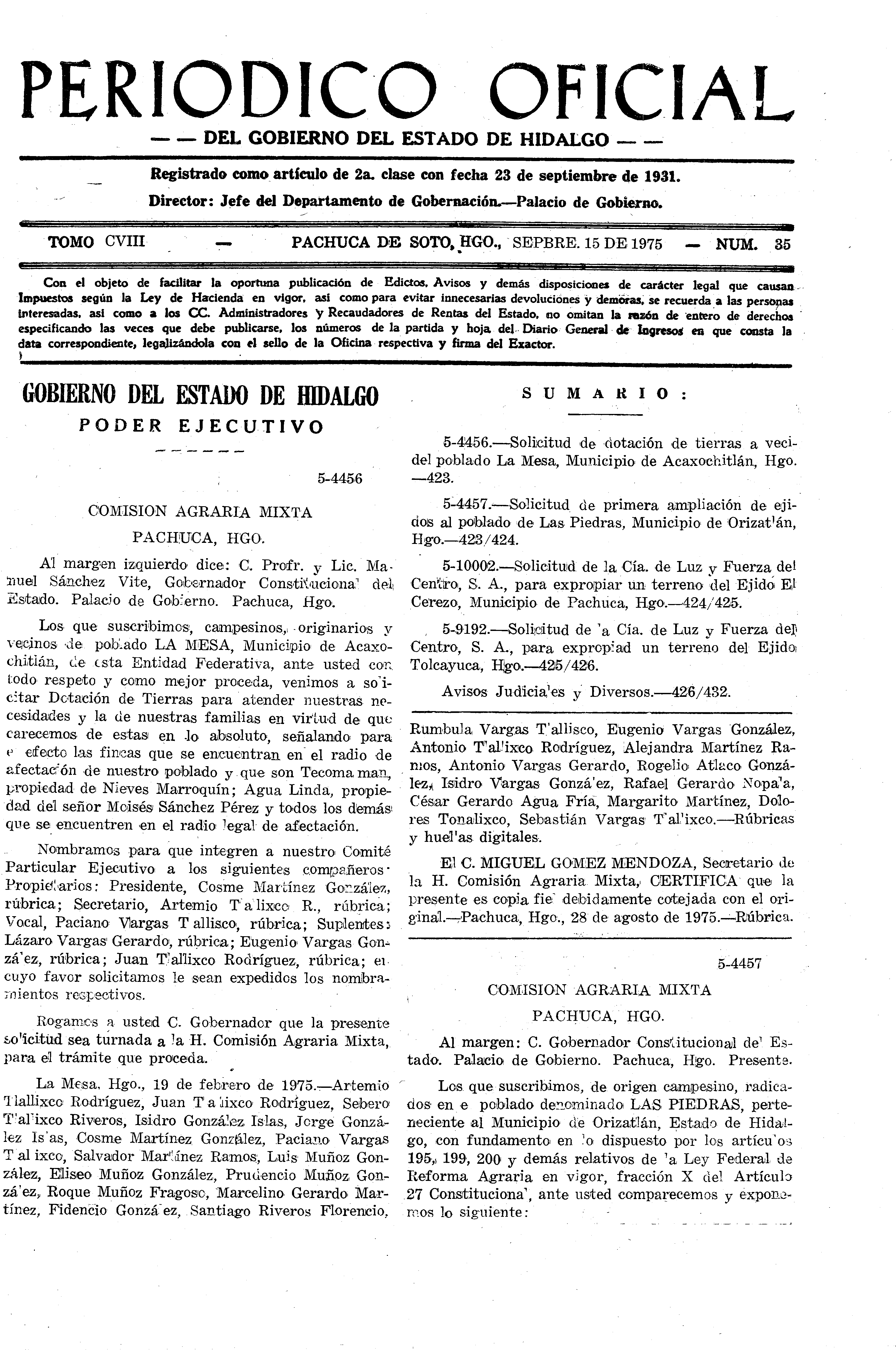 Descargar Periódico Oficial Ordinario 0 del 15 de septiembre de 1975