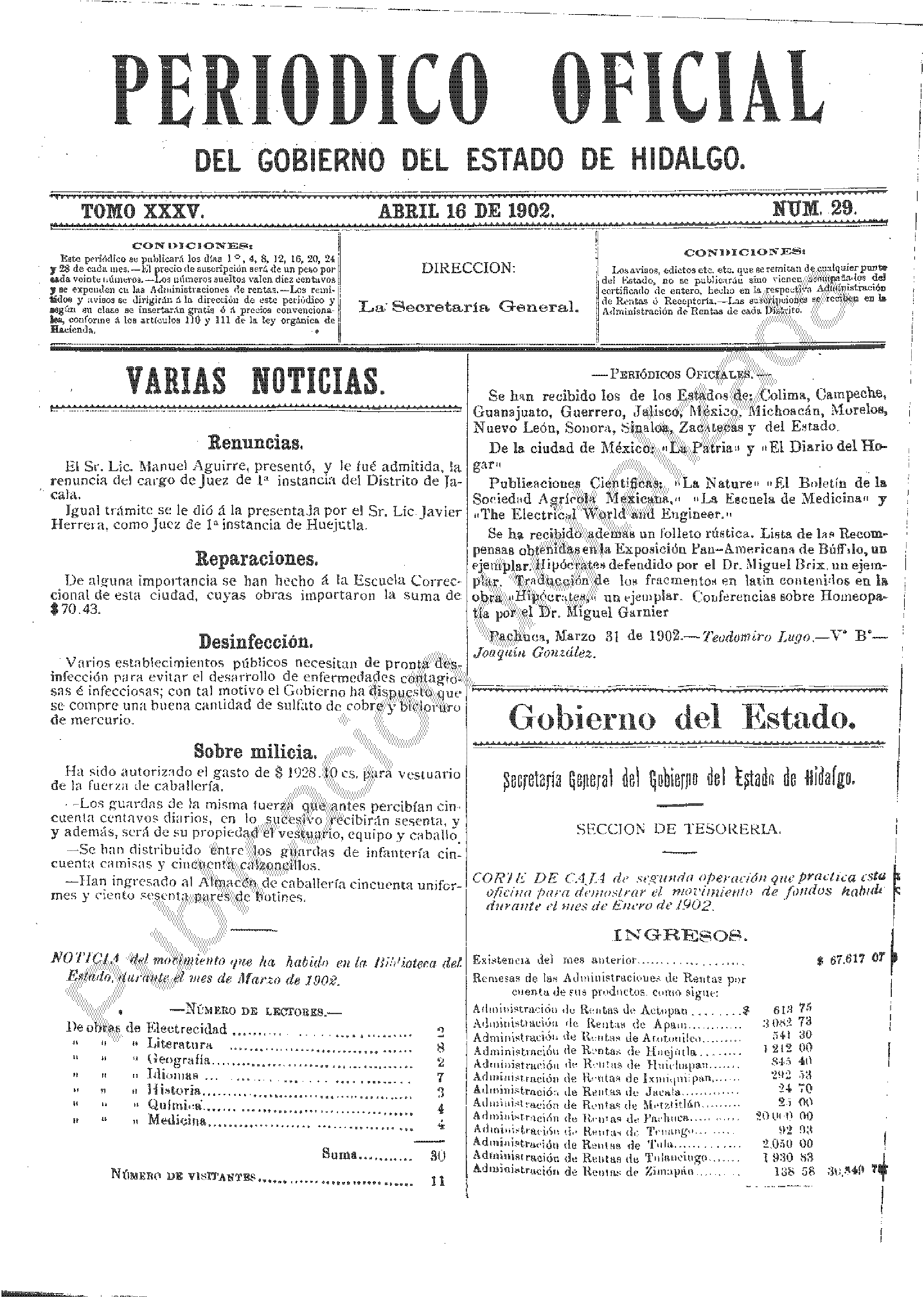Descargar Periódico Oficial Ordinario 0 del 16 de abril de 1902Tamaño 1.10 MB