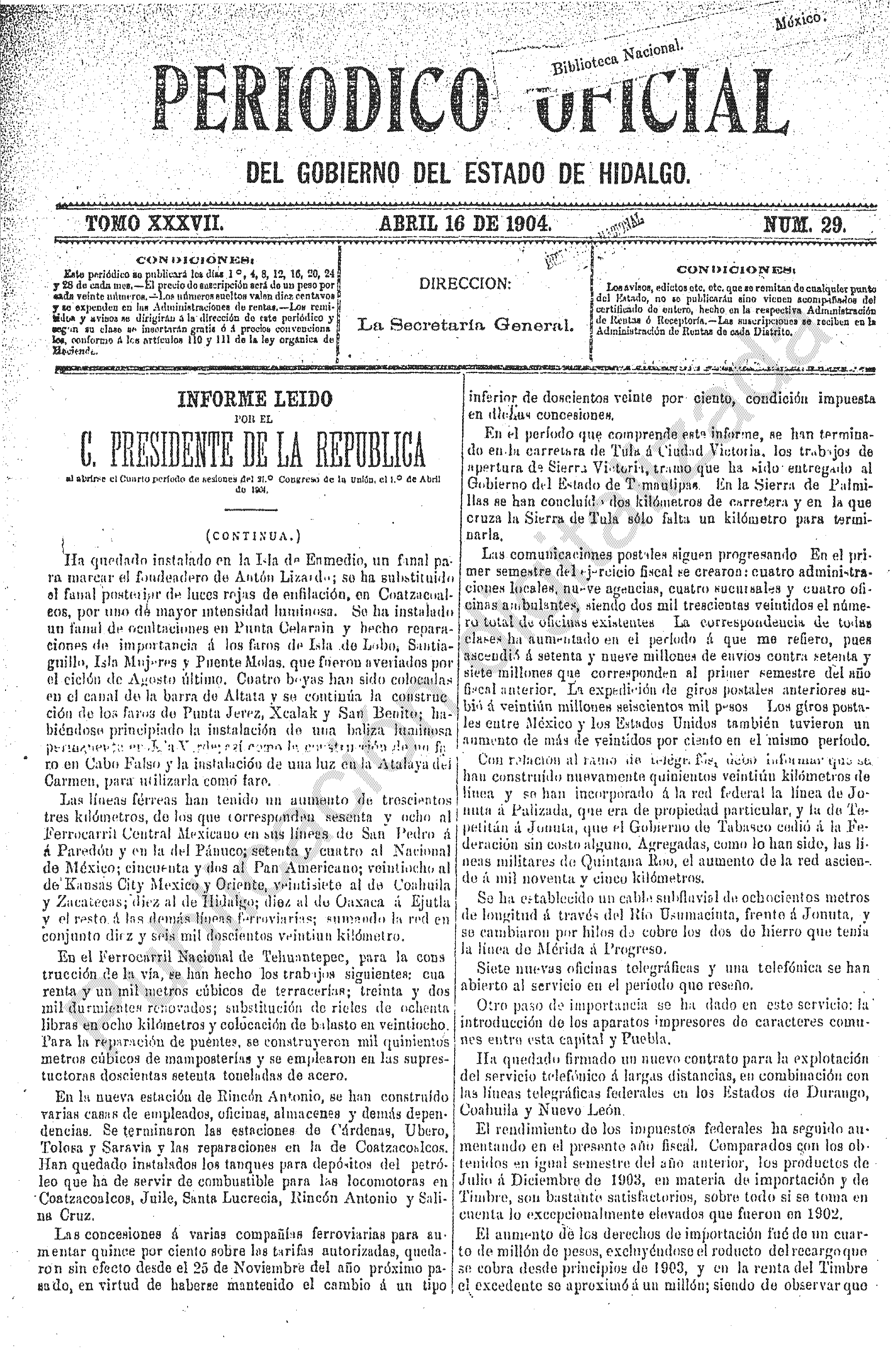 Descargar Periódico Oficial Ordinario 0 del 16 de abril de 1904Tamaño 1.26 MB
