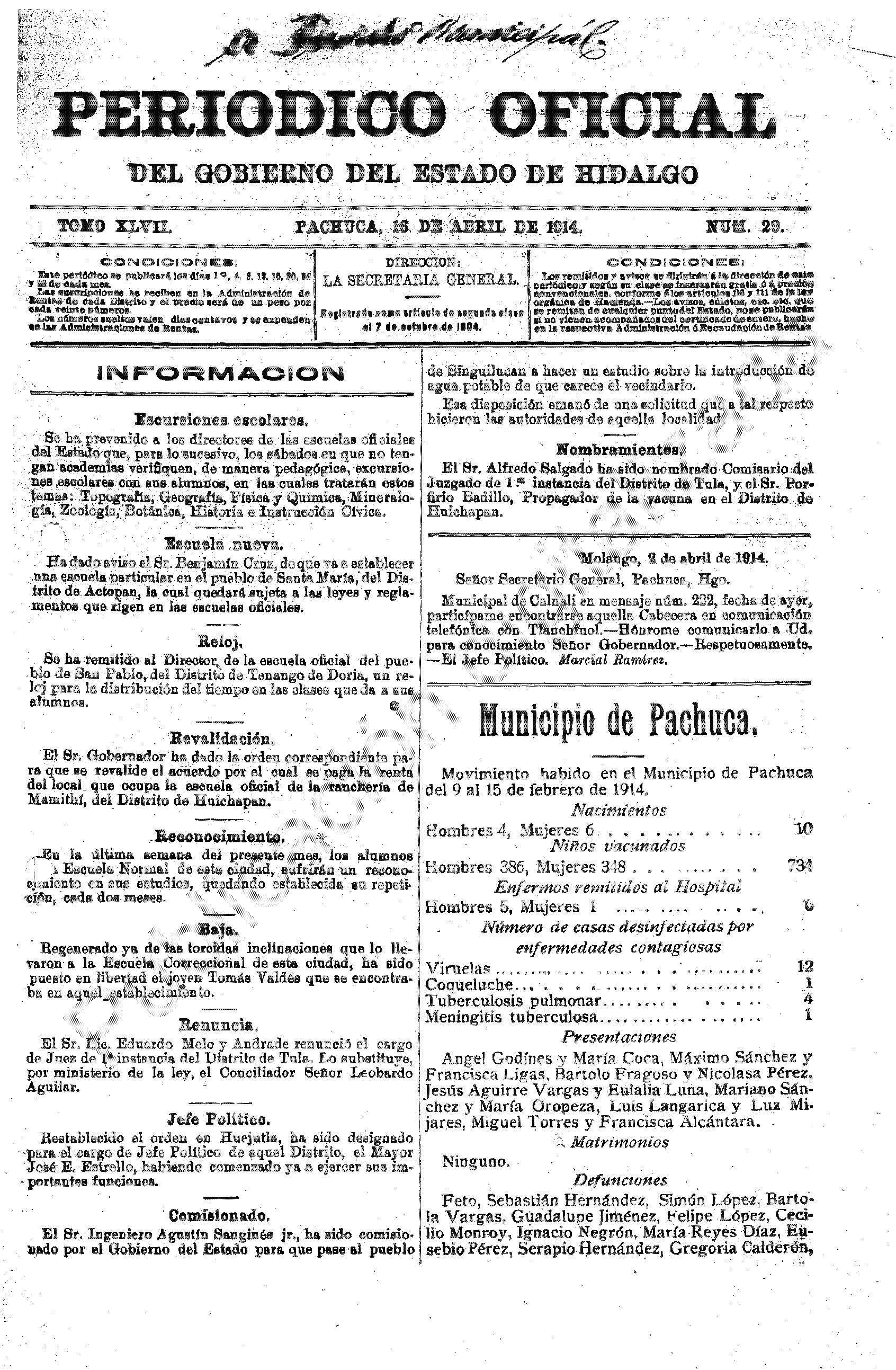Descargar Periódico Oficial Ordinario 0 del 16 de abril de 1914Tamaño 847.68 KB