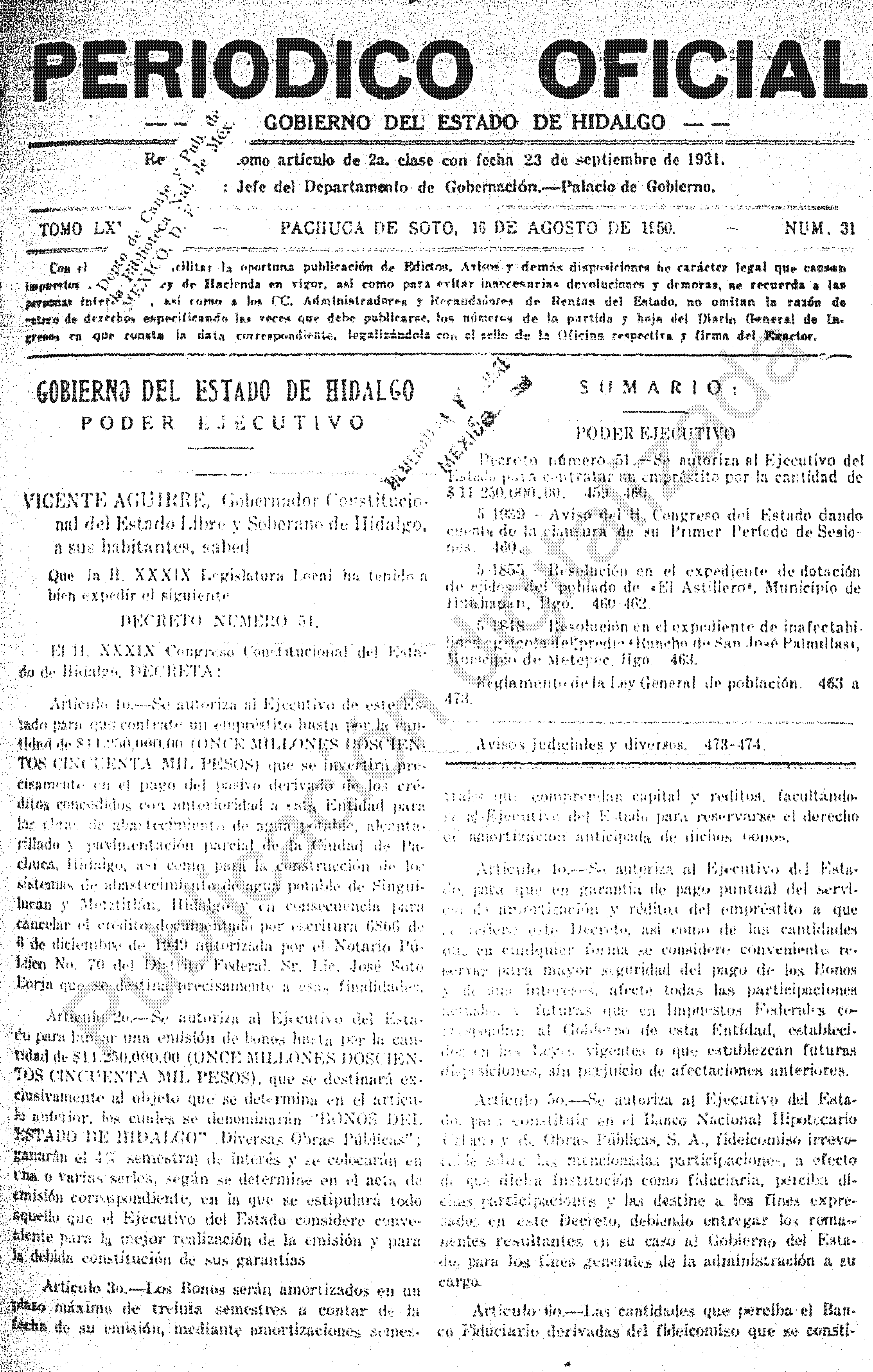 Descargar Periódico Oficial Ordinario 0 del 16 de agosto de 1950