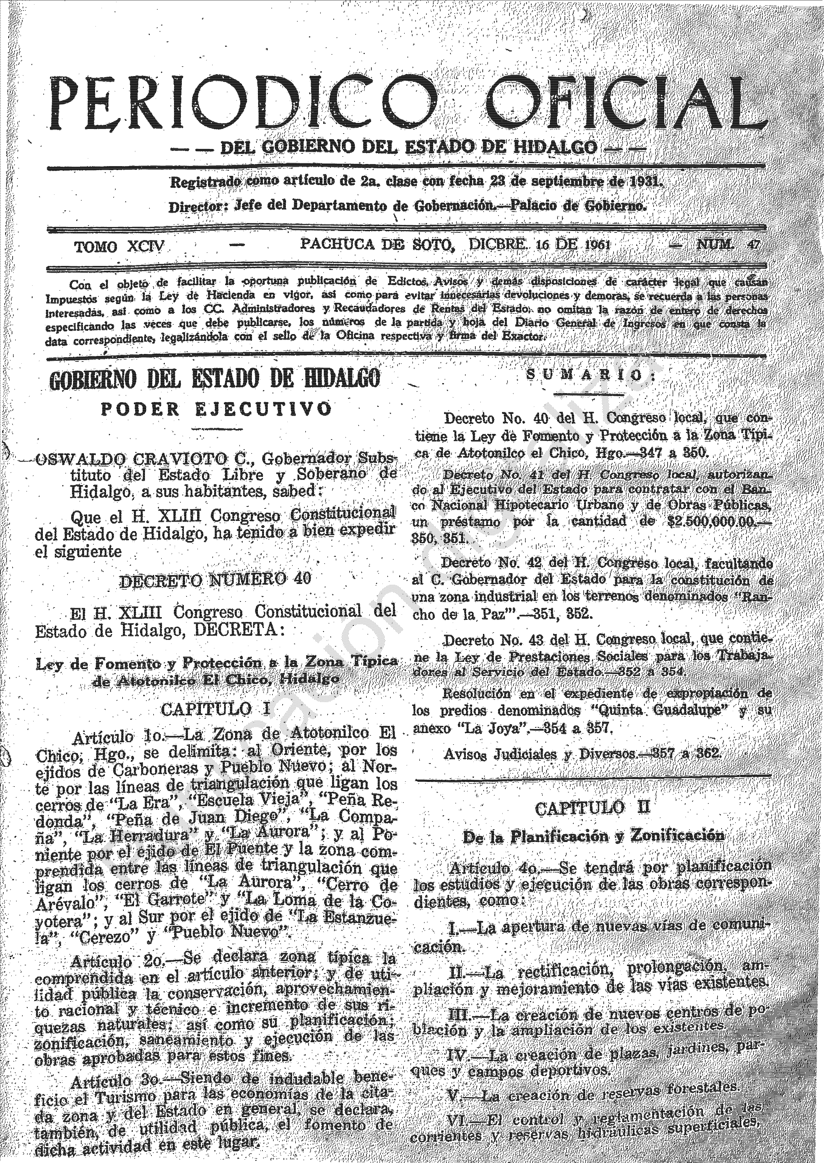 Descargar Periódico Oficial Ordinario 0 del 16 de diciembre de 1961El portal web del Periódico Oficial del Estado de hidalgo es el único medio de difusión oficial del Gobierno del Estado de Hidalgo