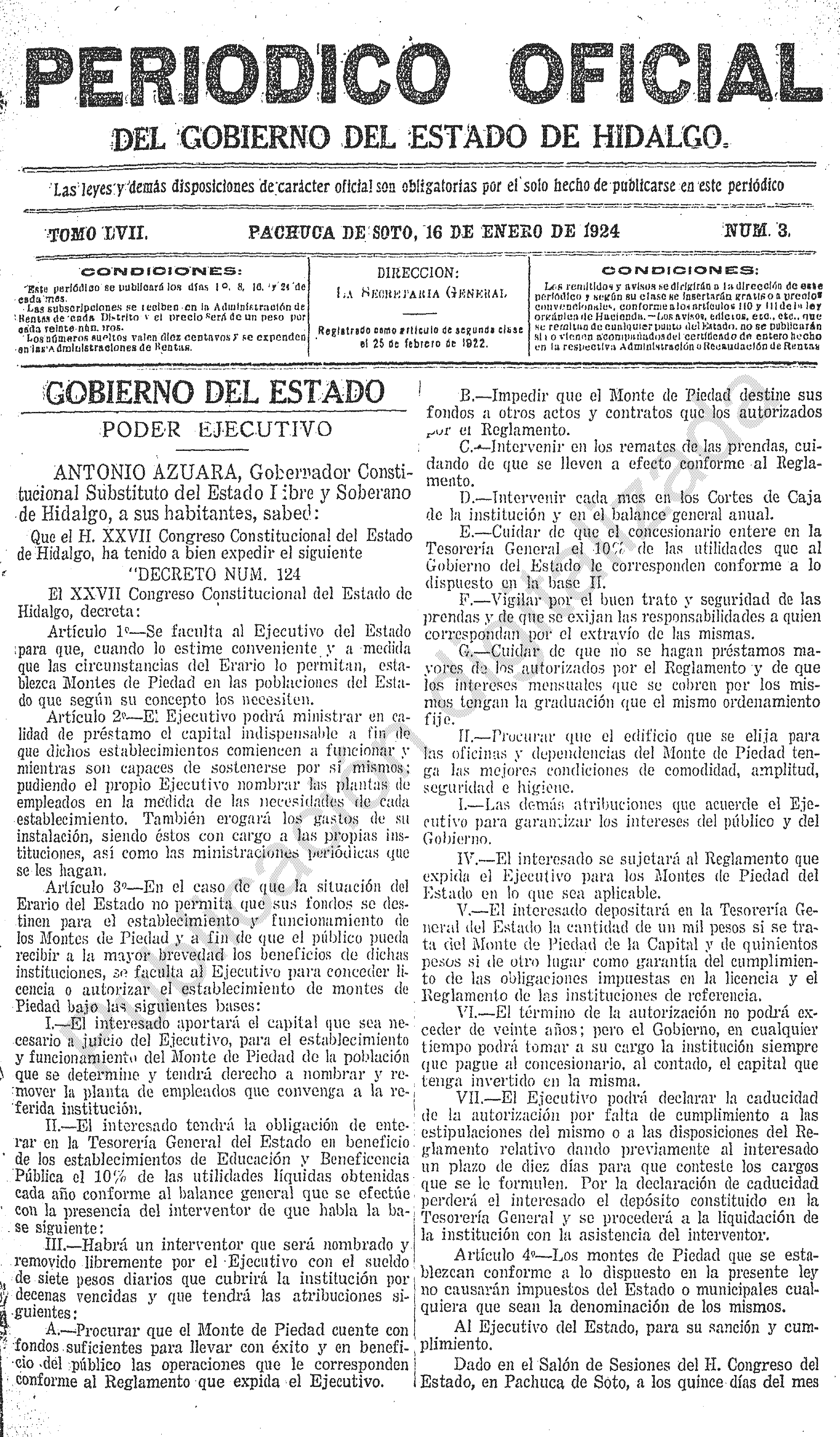 Descargar Periódico Oficial Ordinario 0 del 16 de enero de 1924