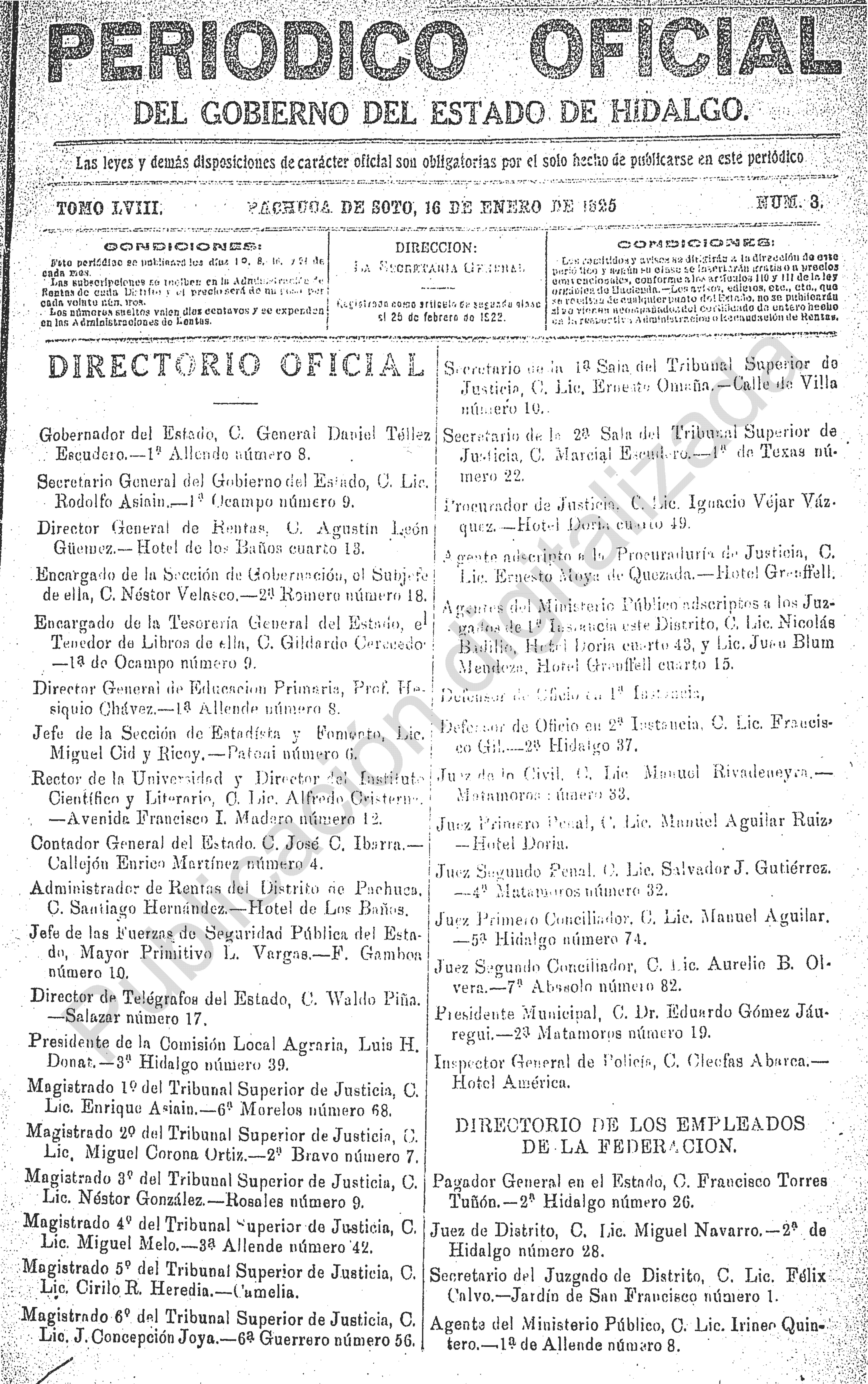 Descargar Periódico Oficial Ordinario 0 del 16 de enero de 1925