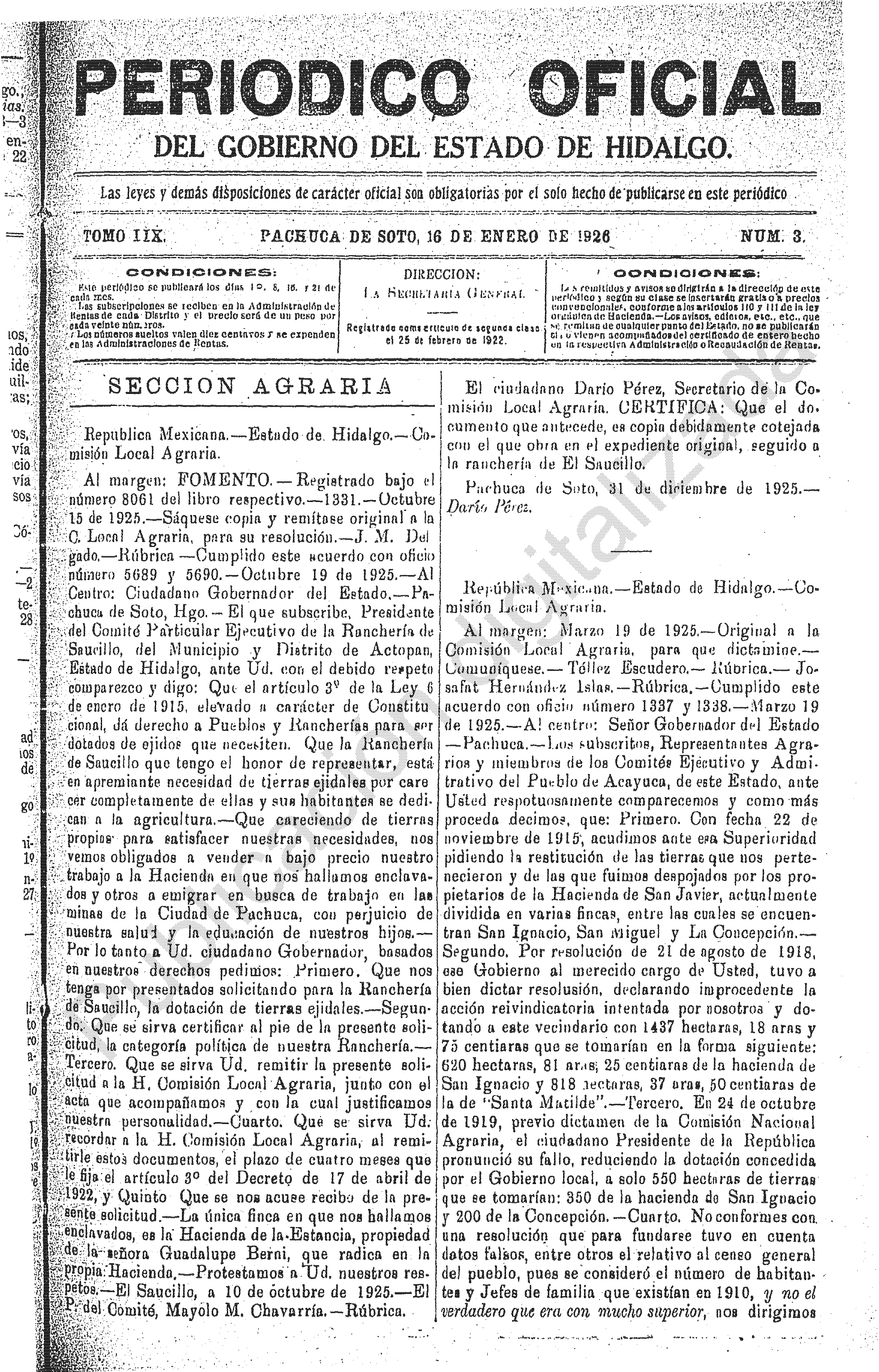 Descargar Periódico Oficial Ordinario 0 del 16 de enero de 1926El portal web del Periódico Oficial del Estado de hidalgo es el único medio de difusión oficial del Gobierno del Estado de Hidalgo