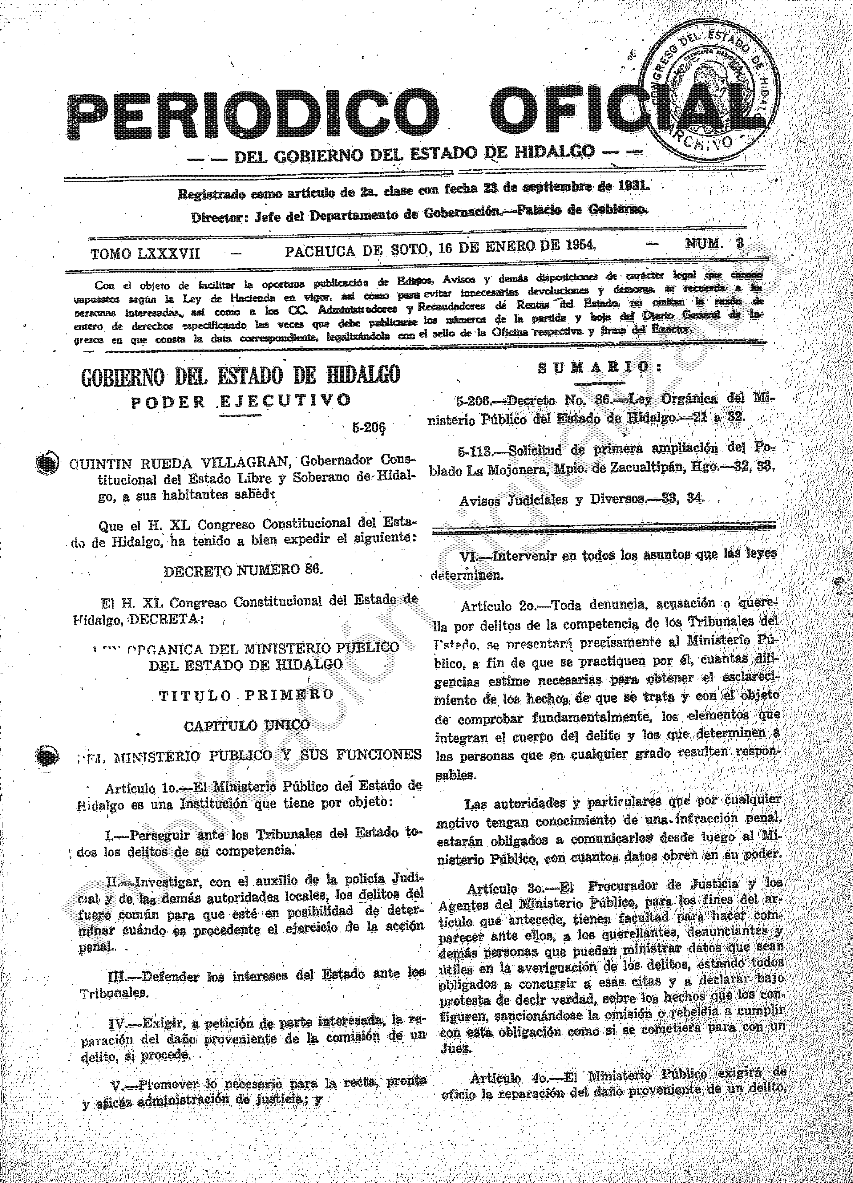 Descargar Periódico Oficial Ordinario 0 del 16 de enero de 1954