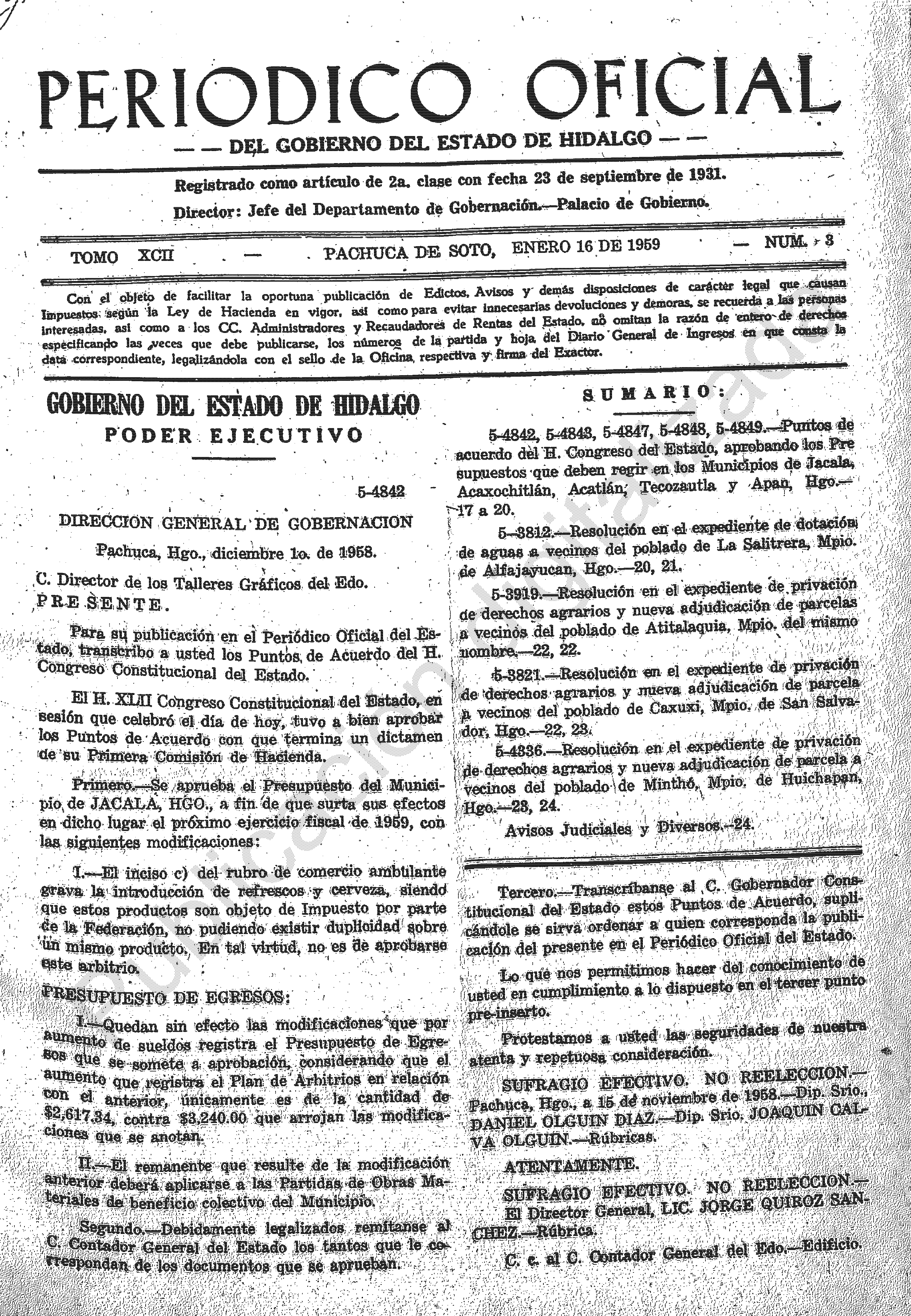 Descargar Periódico Oficial Ordinario 0 del 16 de enero de 1959
