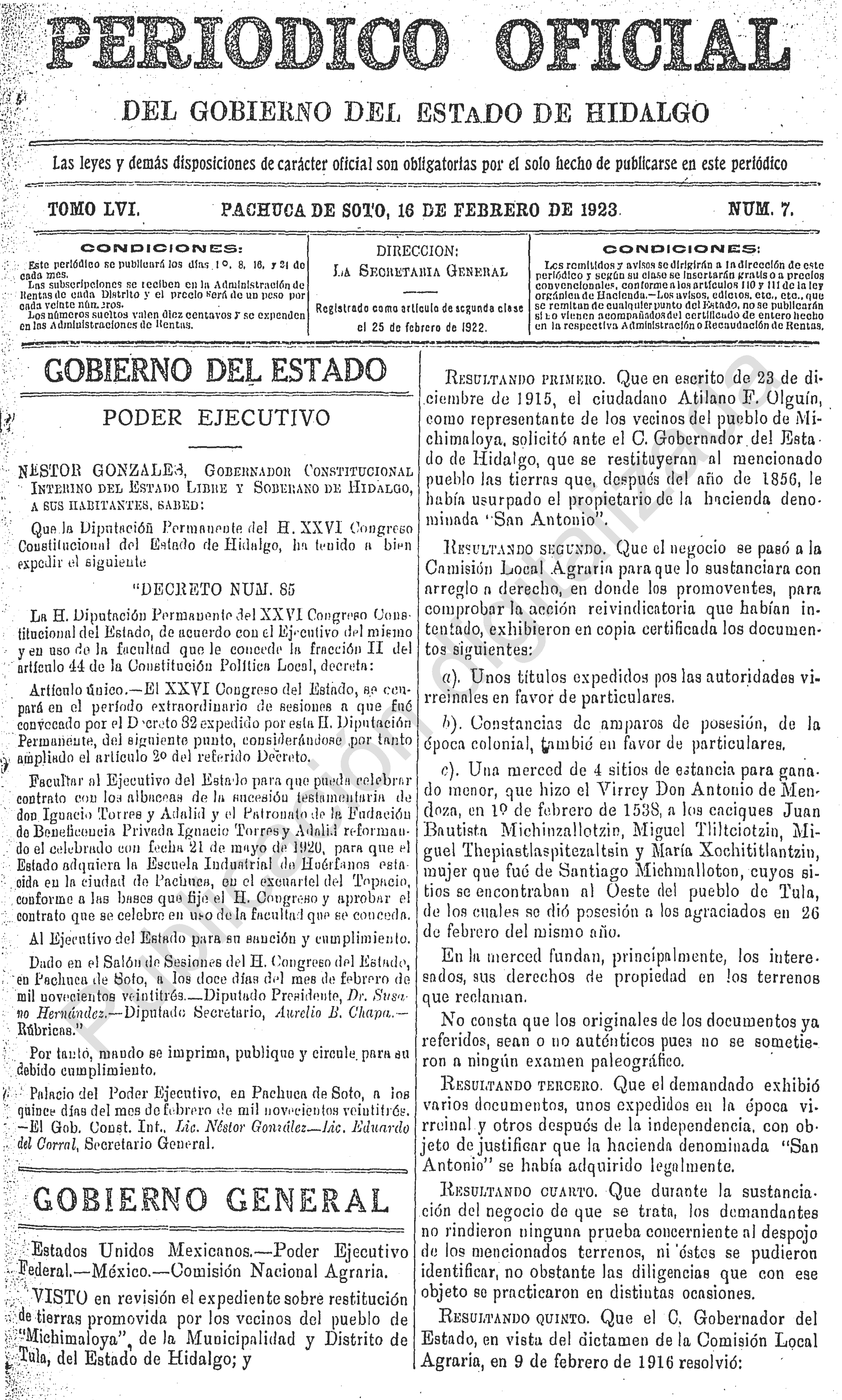Descargar Periódico Oficial Ordinario 0 del 16 de febrero de 1923