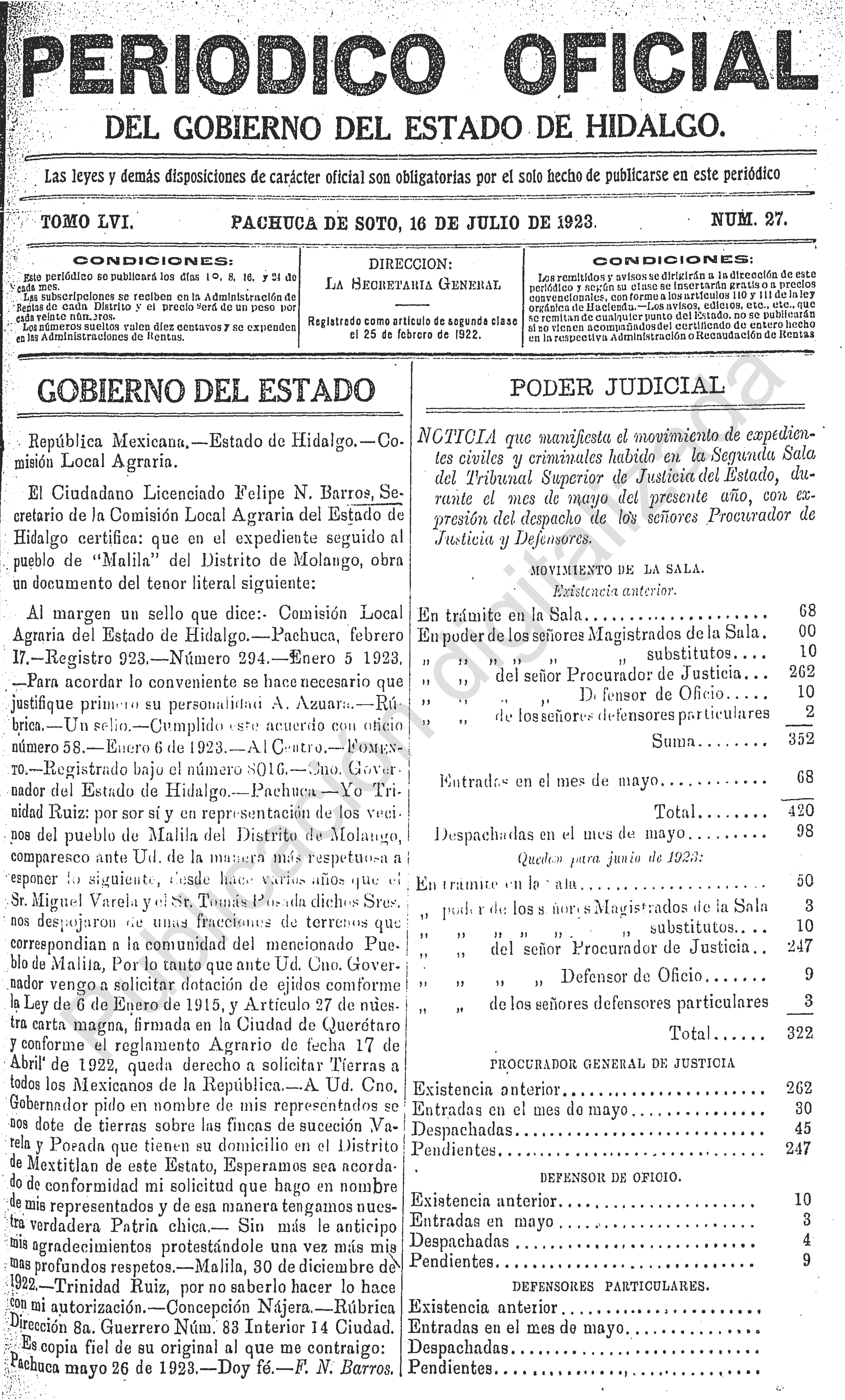 Descargar Periódico Oficial ordinario 0 del 16 de julio de 1923