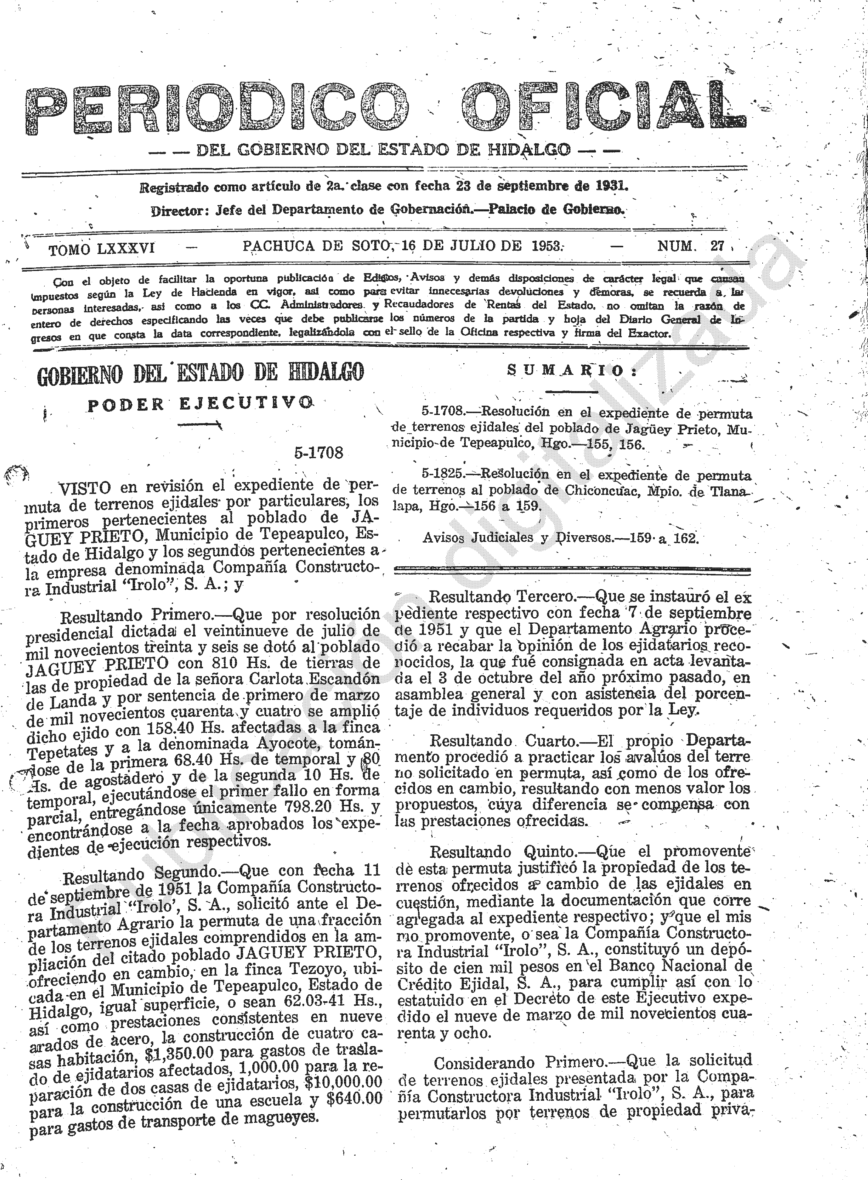 Descargar Periódico Oficial Ordinario 0 del 16 de julio de 1953