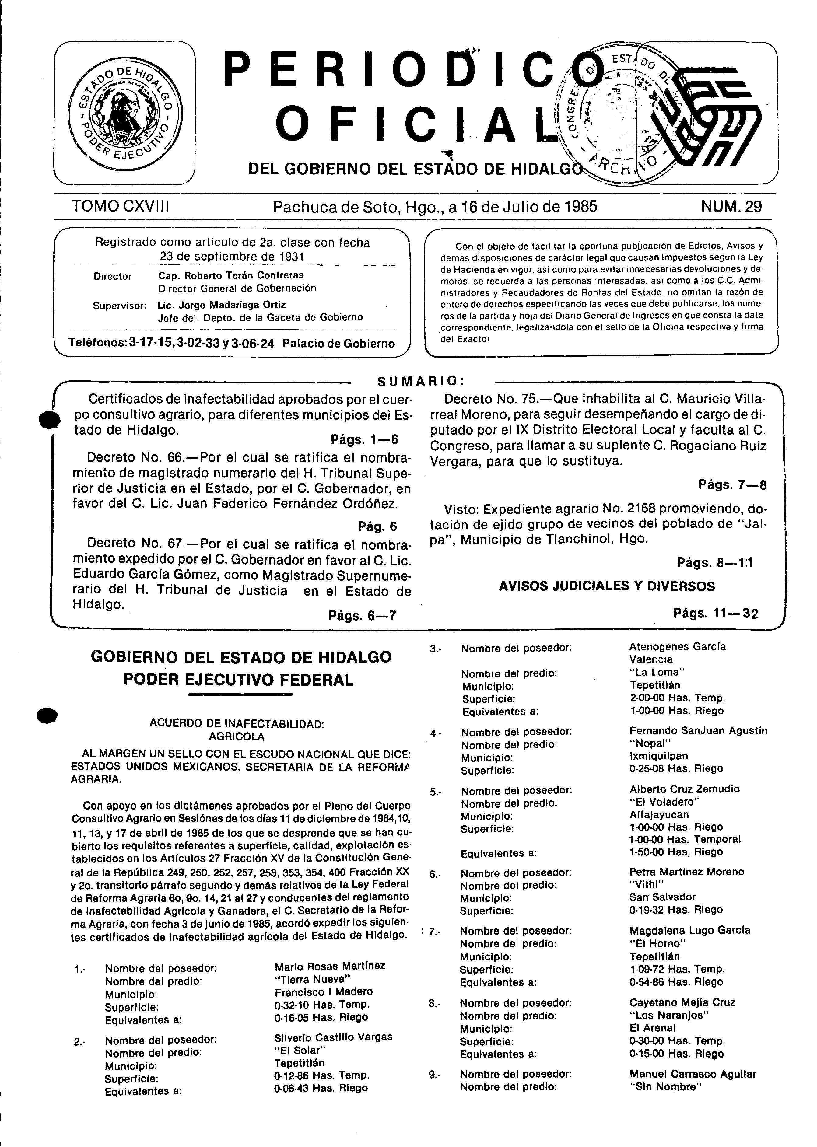 Descargar Periódico Oficial Ordinario 0 del 16 de julio de 1985