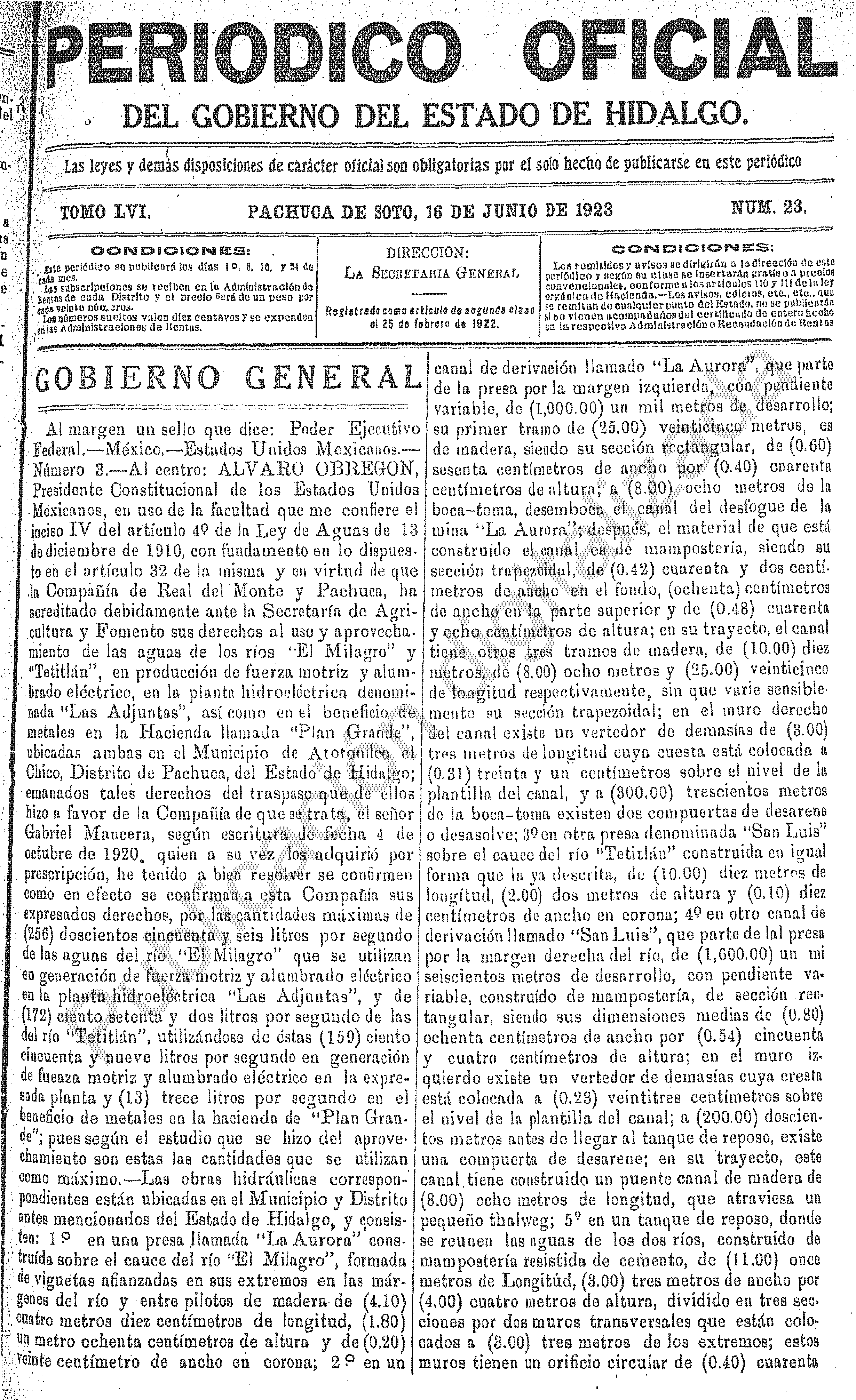 Descargar Periódico Oficial Ordinario 0 del 16 de junio de 1923