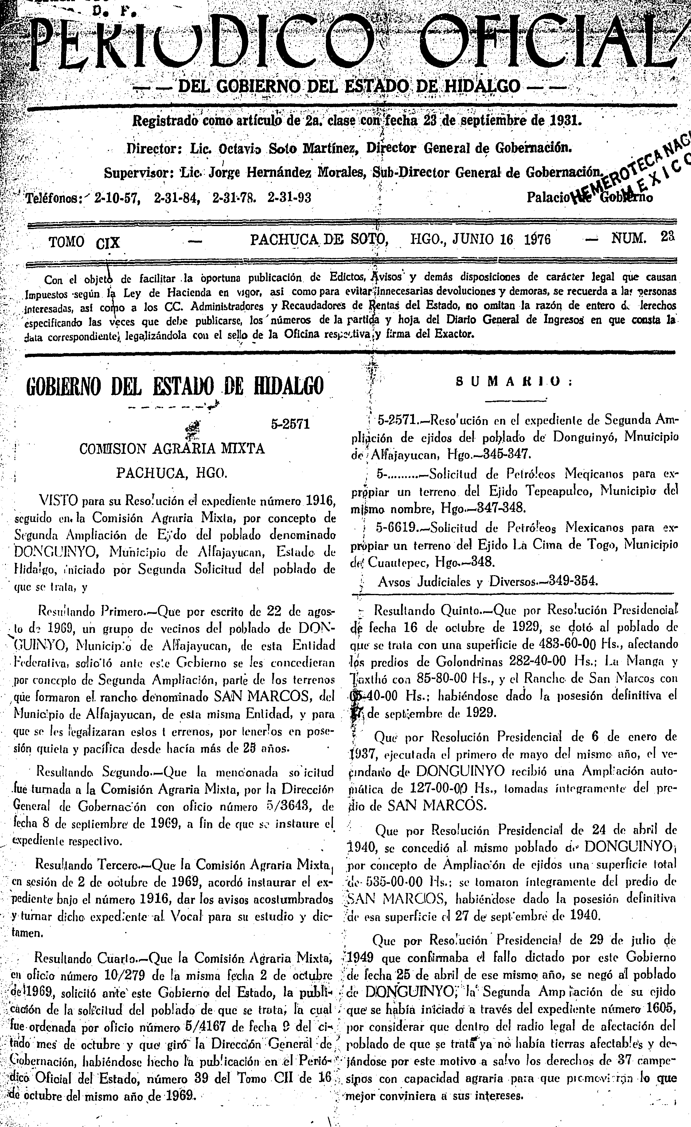 Descargar Periódico Oficial Ordinario 0 del 16 de junio de 1976