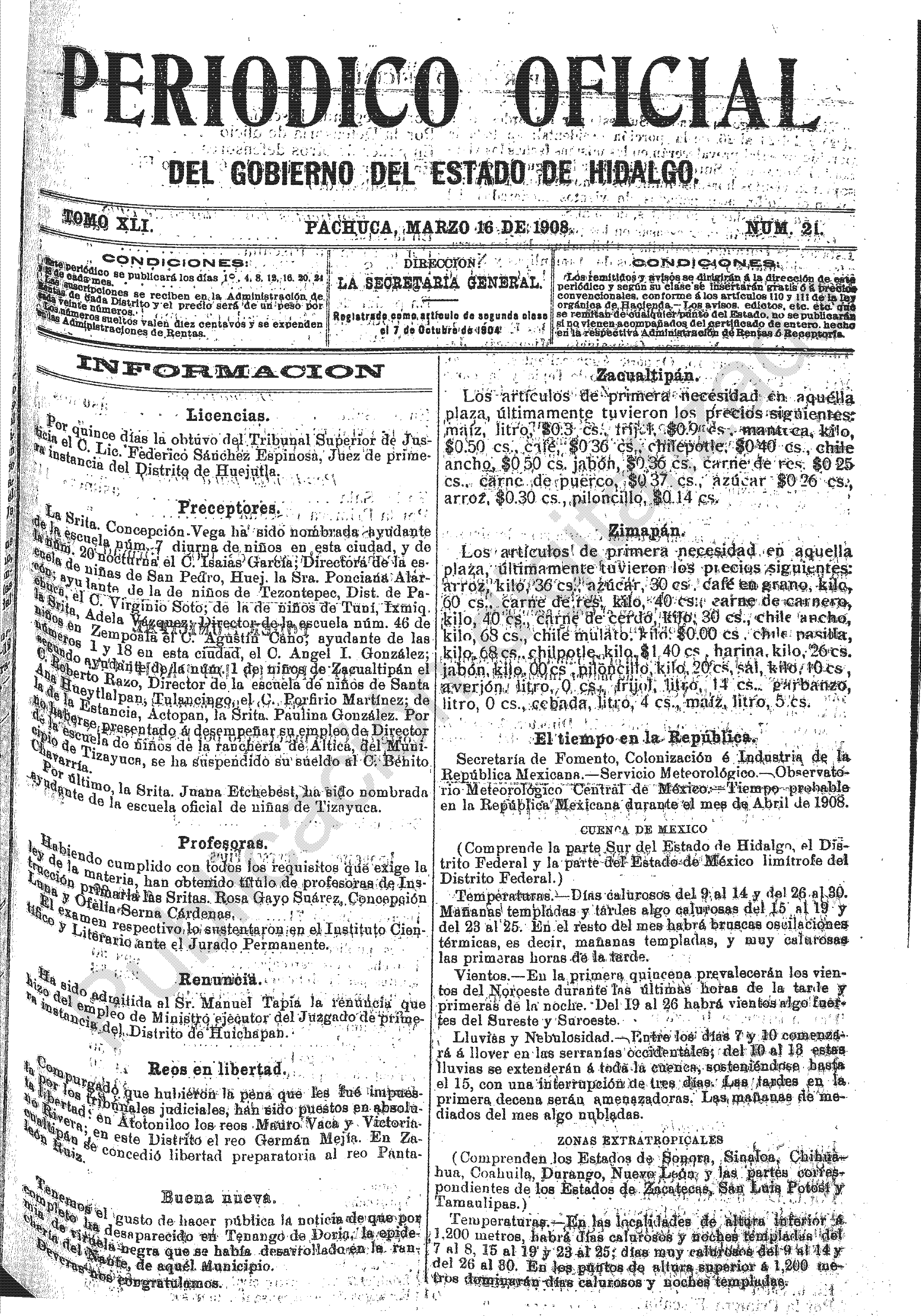 Descargar Periódico Oficial Ordinario 0 del 16 de marzo de 1908Tamaño 1.38 MB