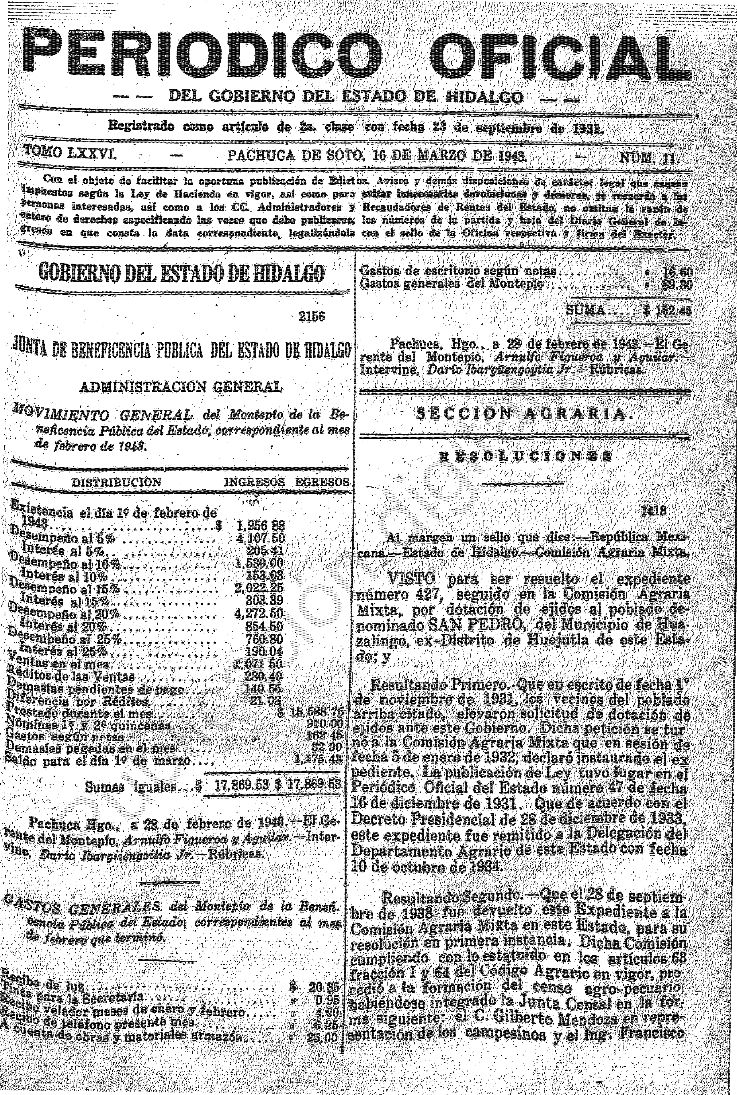 Descargar Periódico Oficial Ordinario 0 del 16 de marzo de 1943