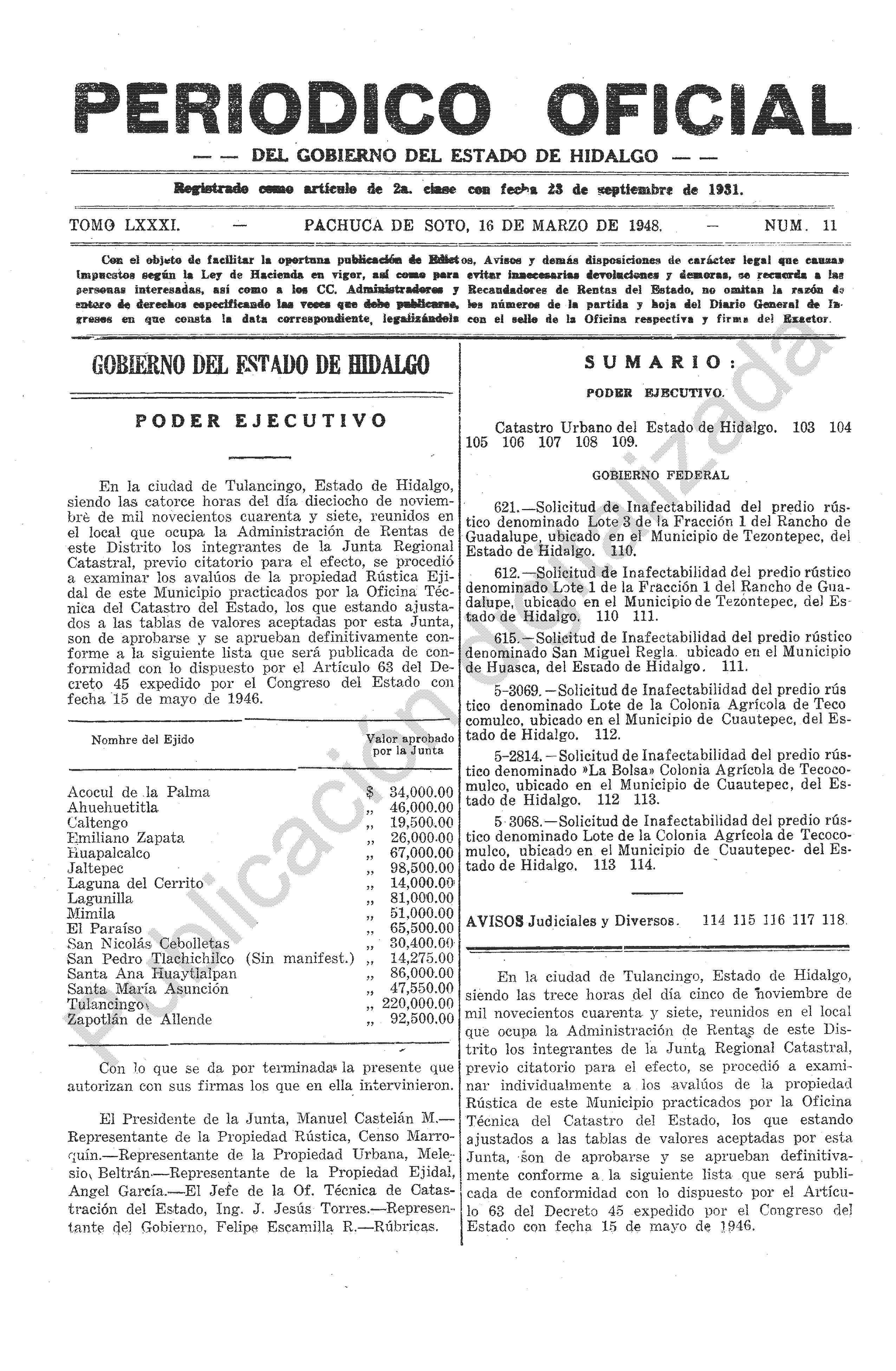 Descargar Periódico Oficial Ordinario 0 del 16 de marzo de 1948