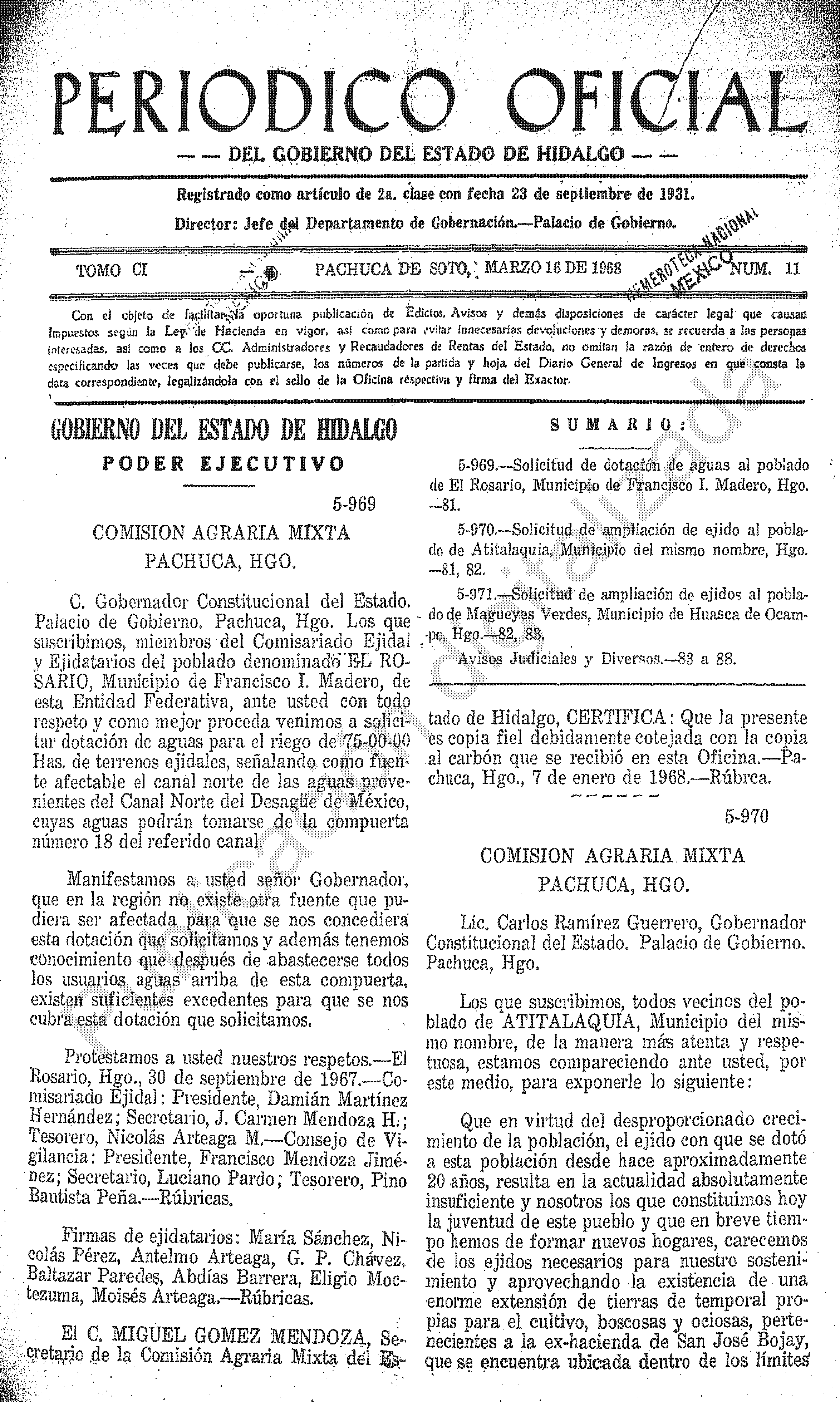 Descargar Periódico Oficial Ordinario 0 del 16 de marzo de 1968