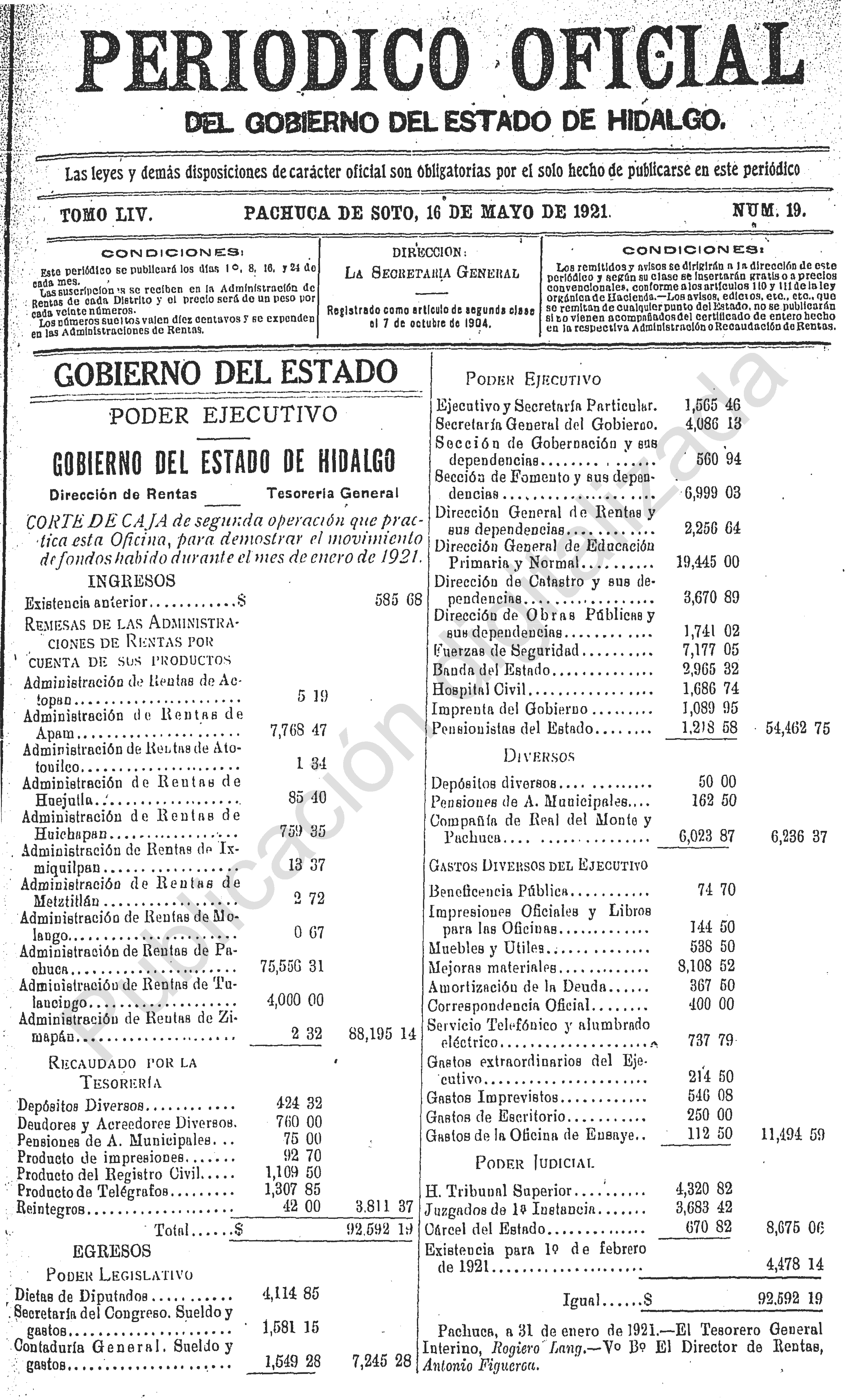 Descargar Periódico Oficial Ordinario 0 del 16 de mayo de 1921El portal web del Periódico Oficial del Estado de hidalgo es el único medio de difusión oficial del Gobierno del Estado de Hidalgo