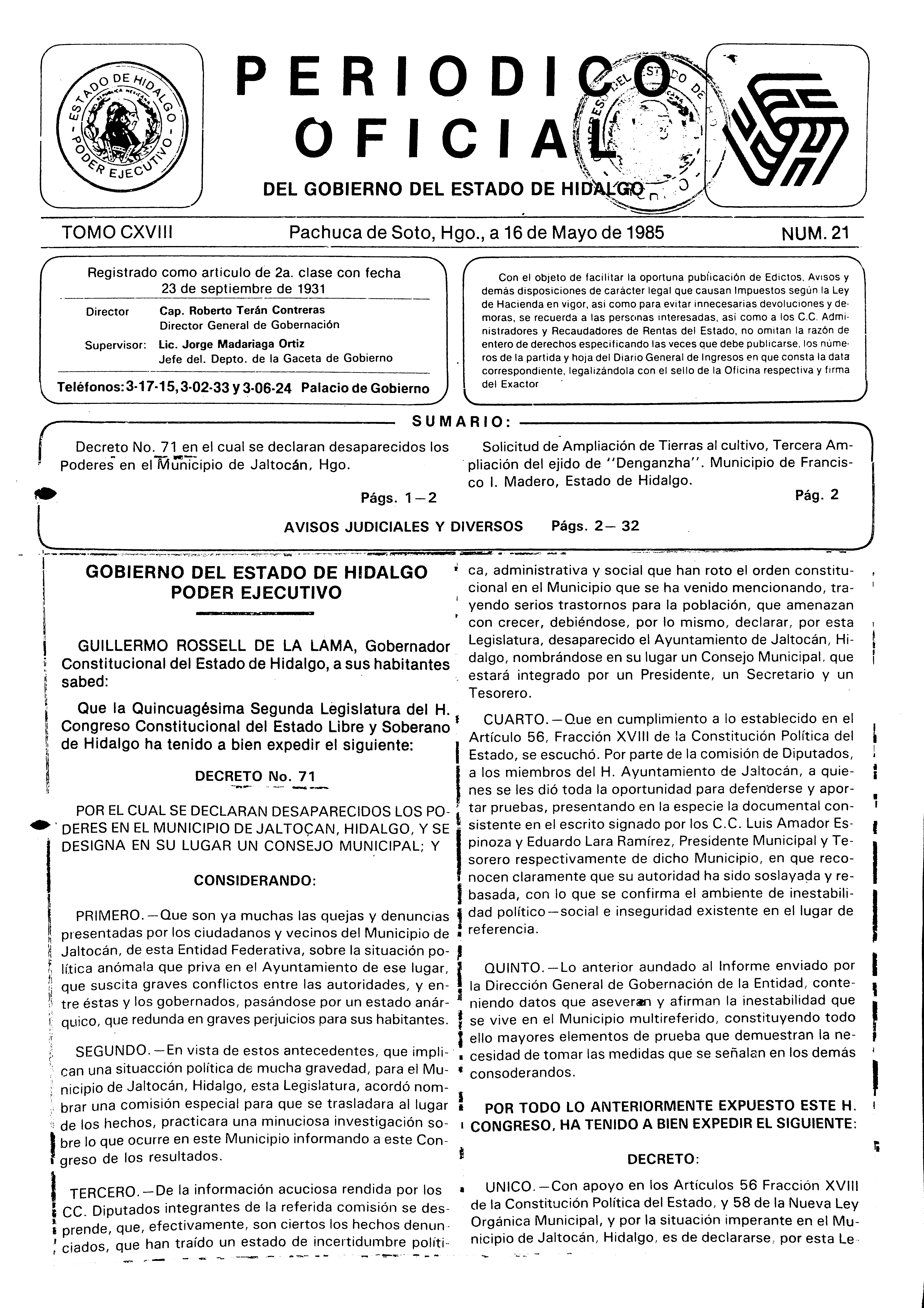 Descargar Periódico Oficial Ordinario 0 del 16 de mayo de 1985