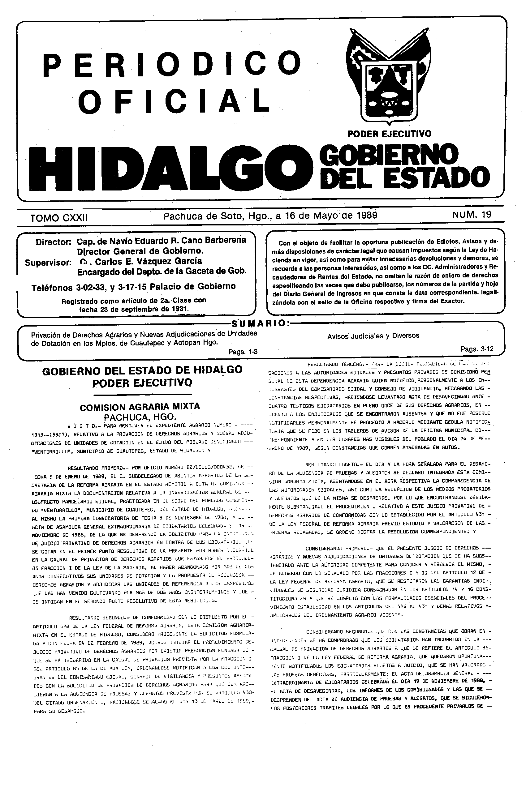 Descargar Periódico Oficial Ordinario 0 del 16 de mayo de 1989