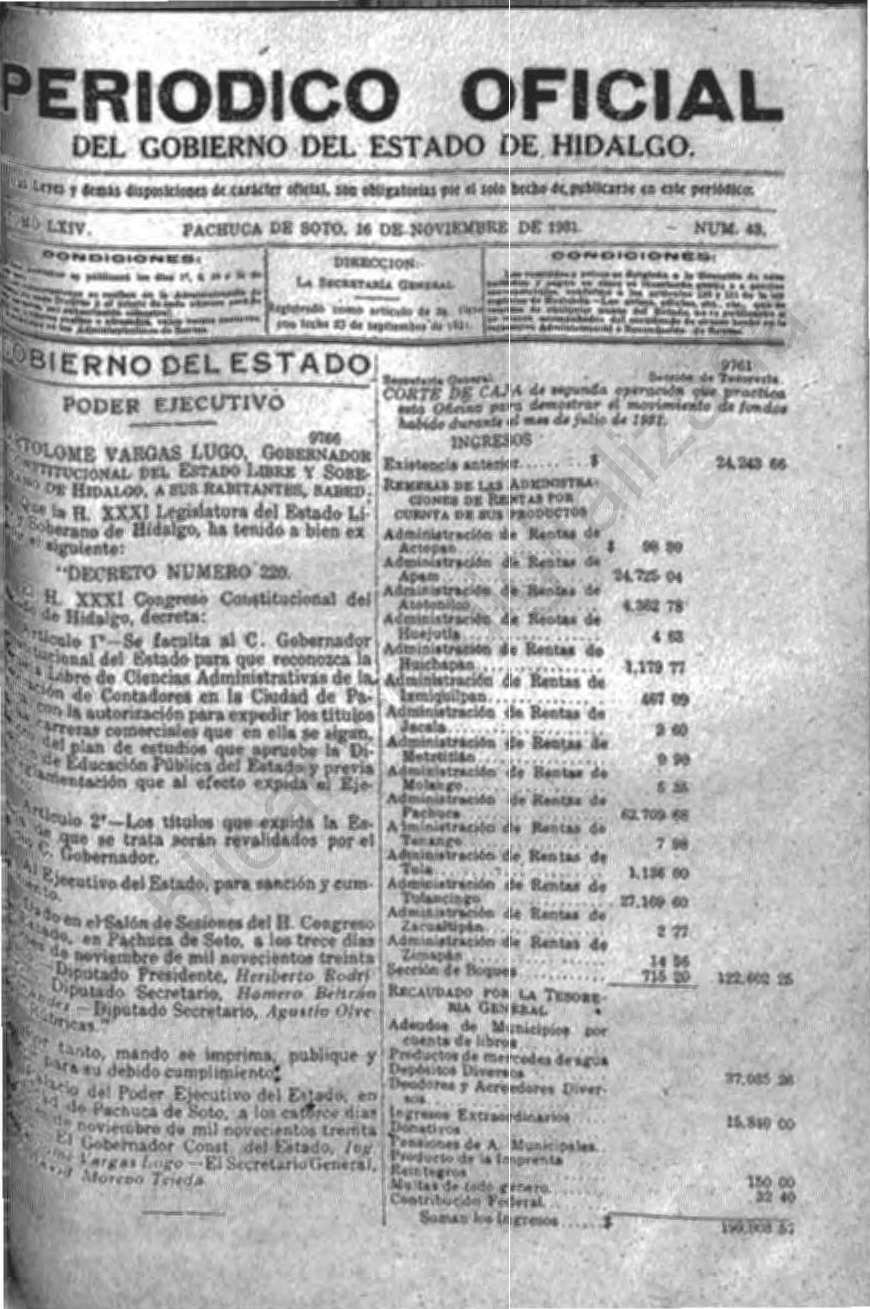 Órgano informativo del Estado Libre y Soberano de Hidalgo