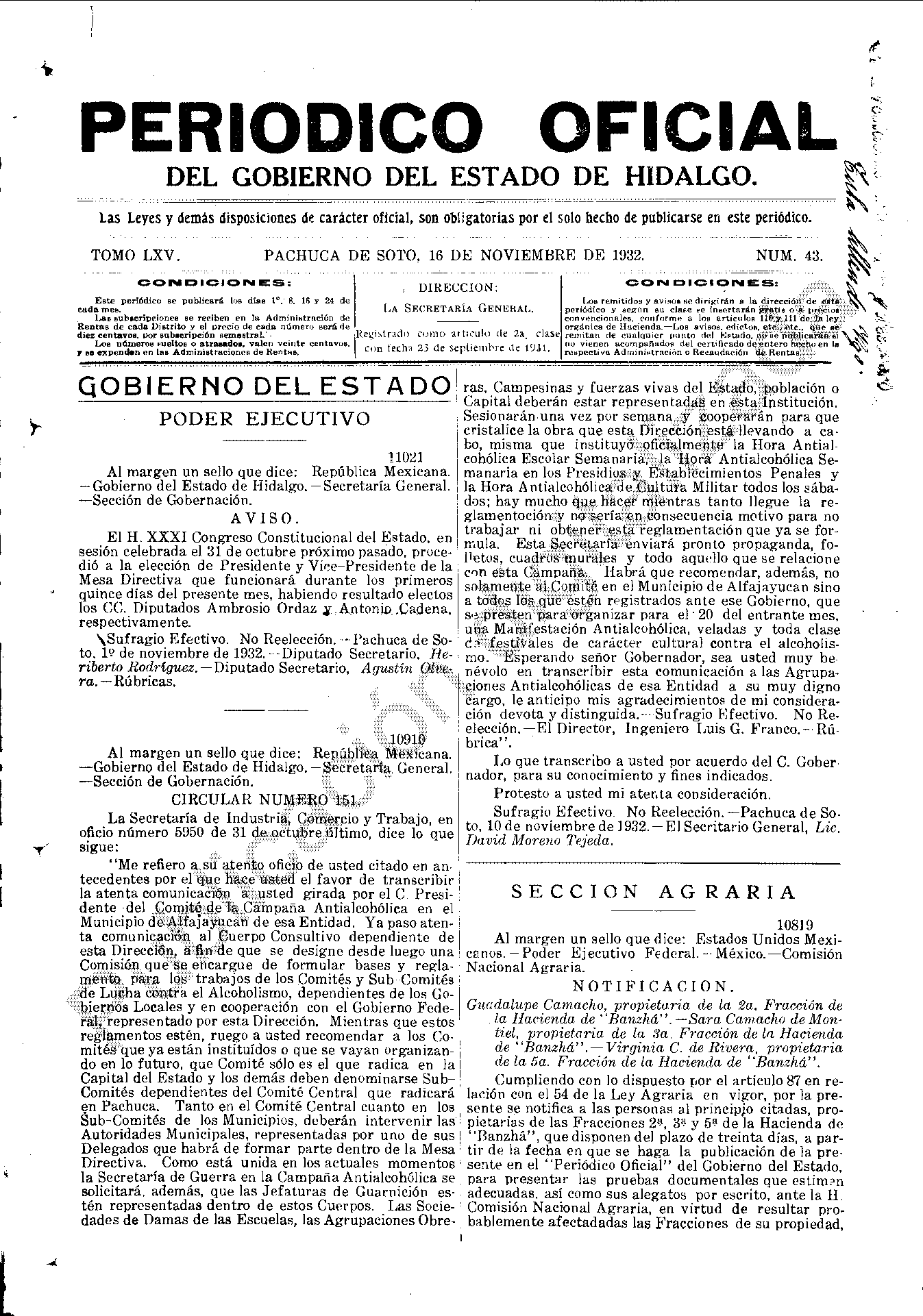 Descargar Periódico Oficial Ordinario 0 del 16 de noviembre de 1932