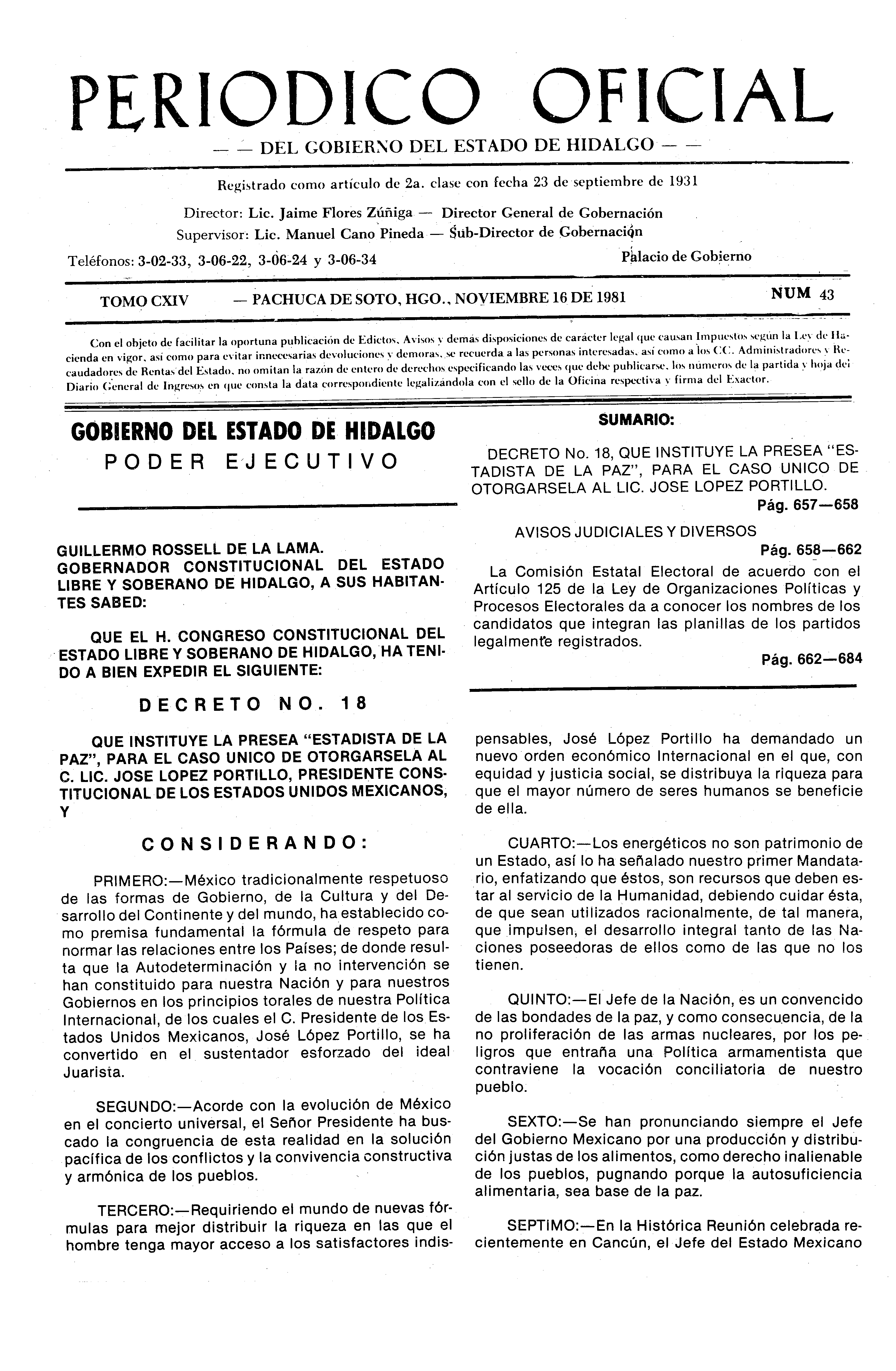 Descargar Periódico Oficial Ordinario 0 del 16 de noviembre de 1981